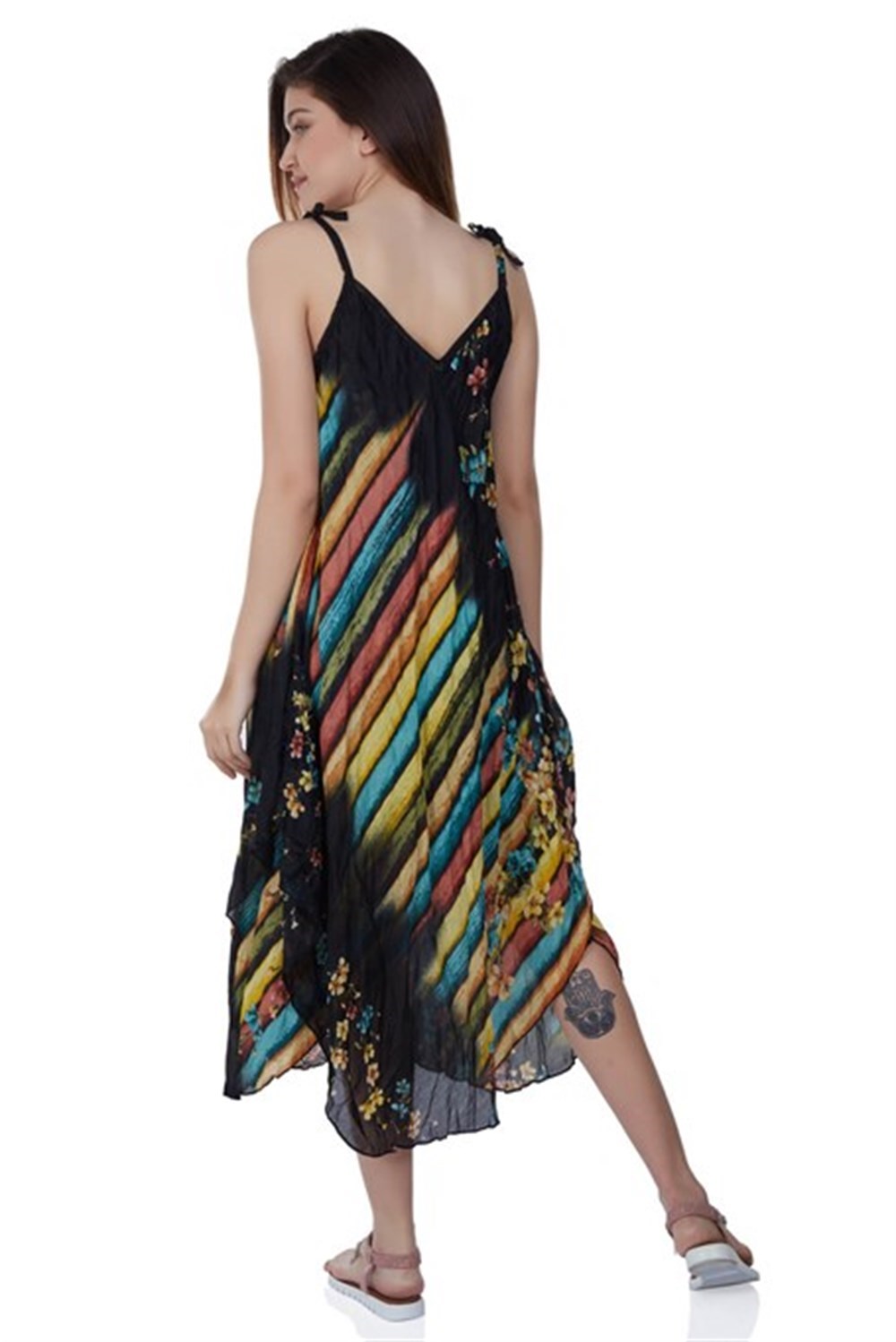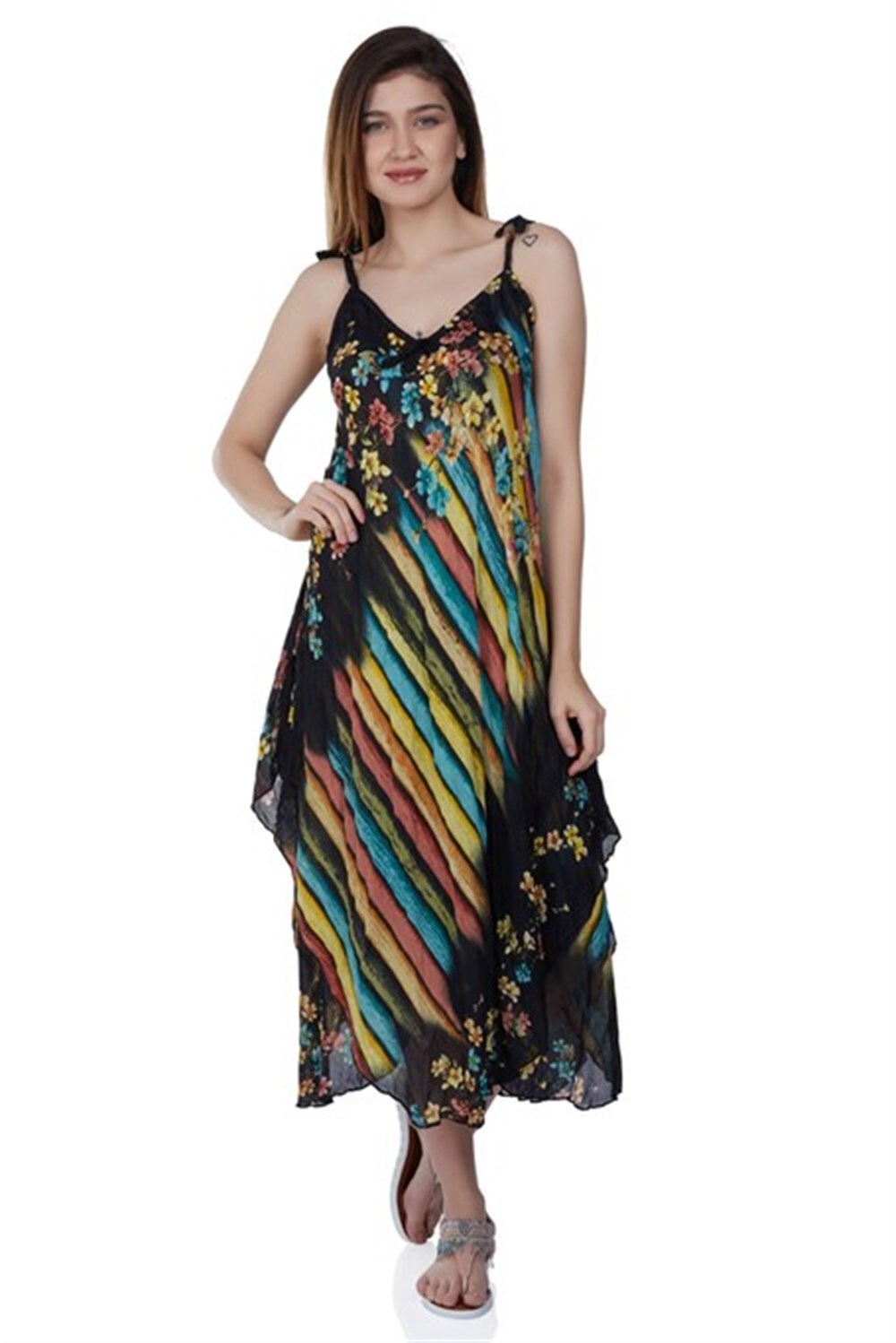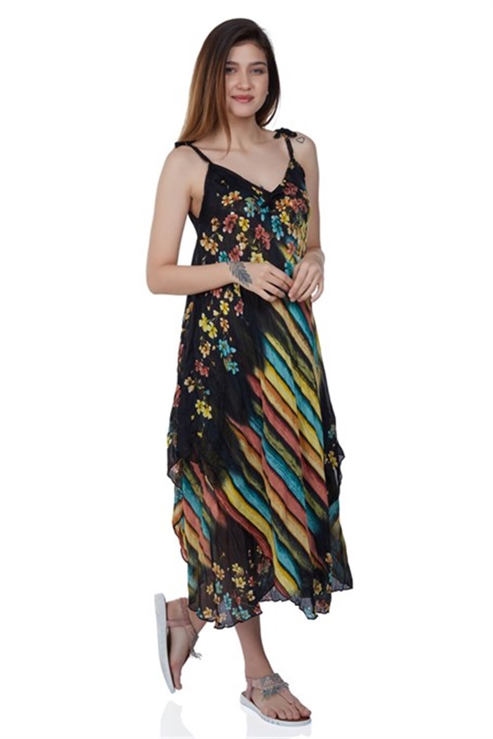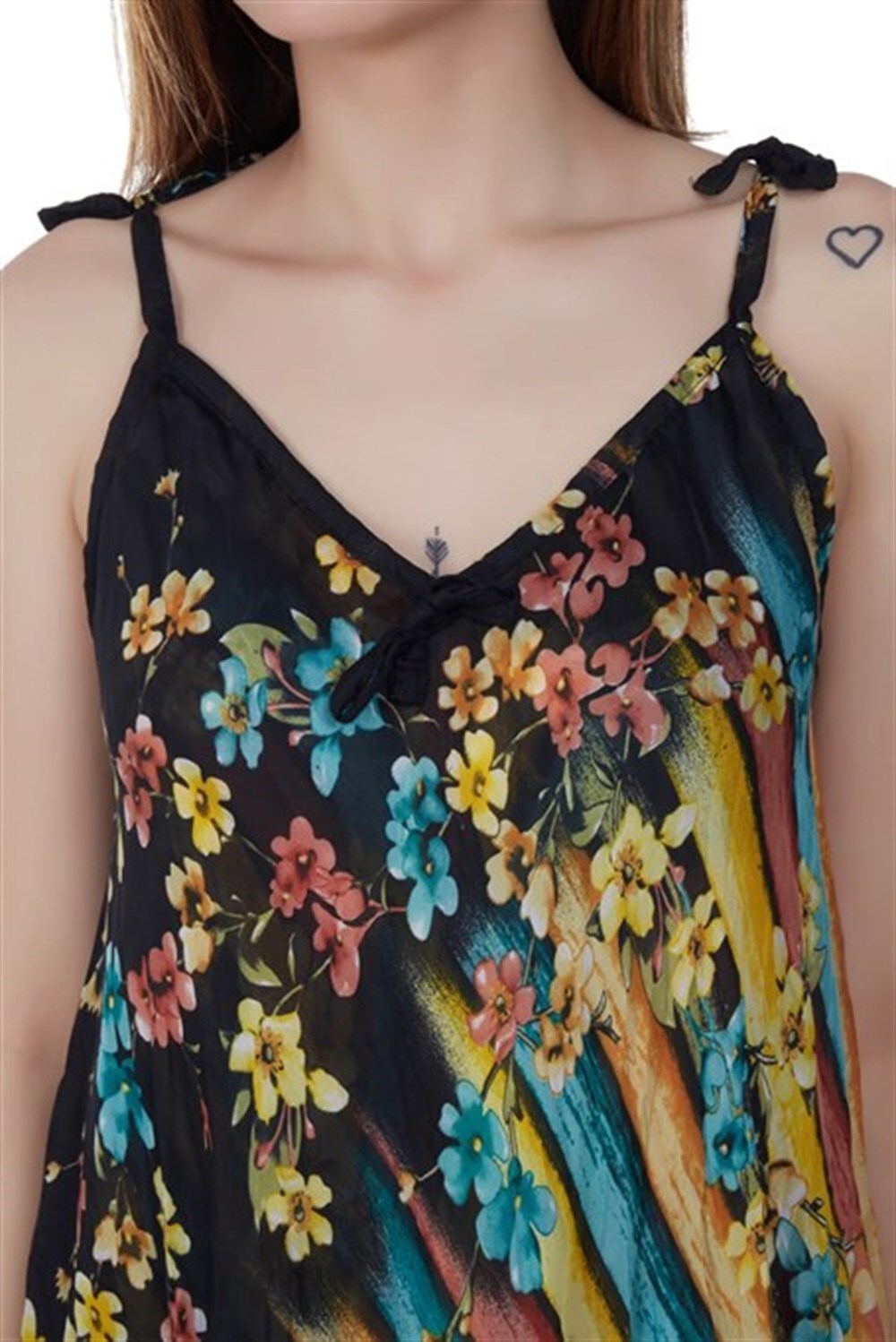 Toptan Afrodit Vual Elbise Papatya Desen Siyah