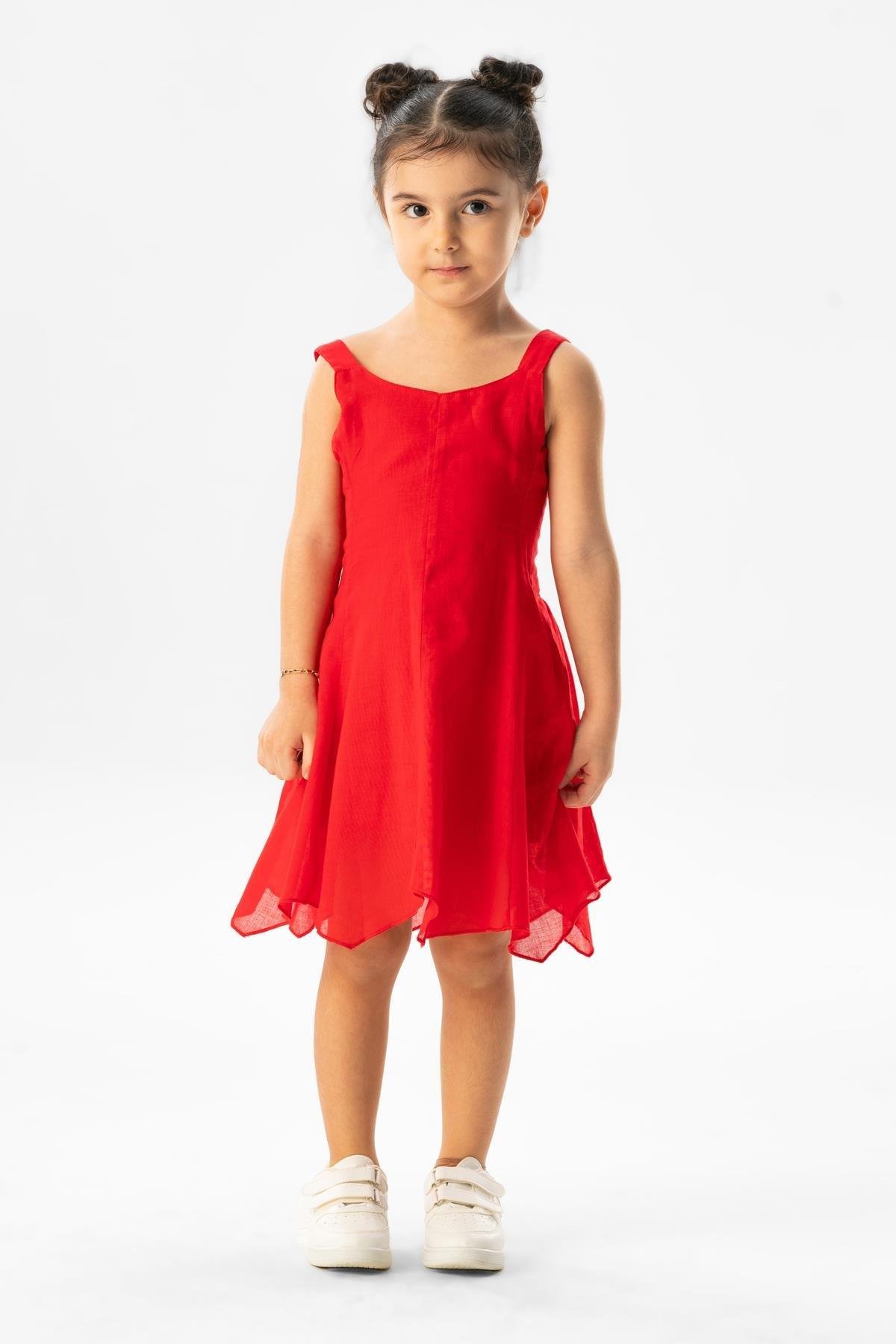 Askılı Vual Emel Yazlık Çocuk Elbise Kırmızı Krmz
