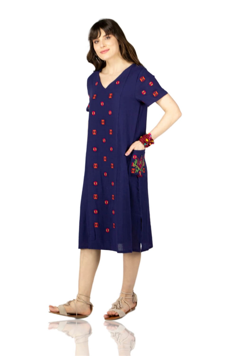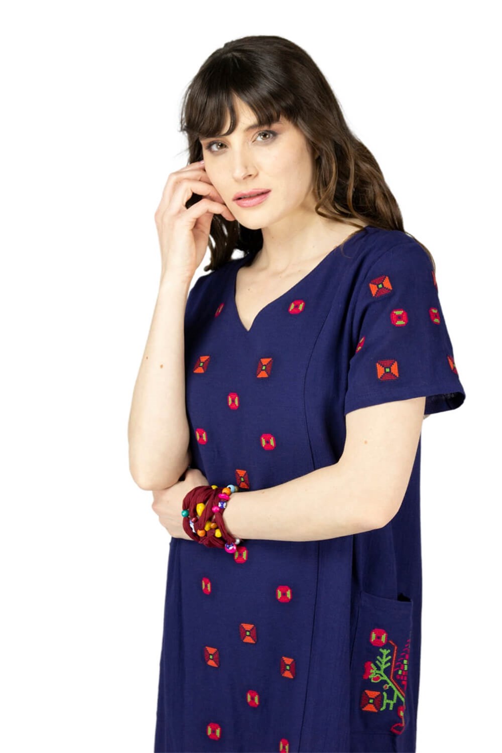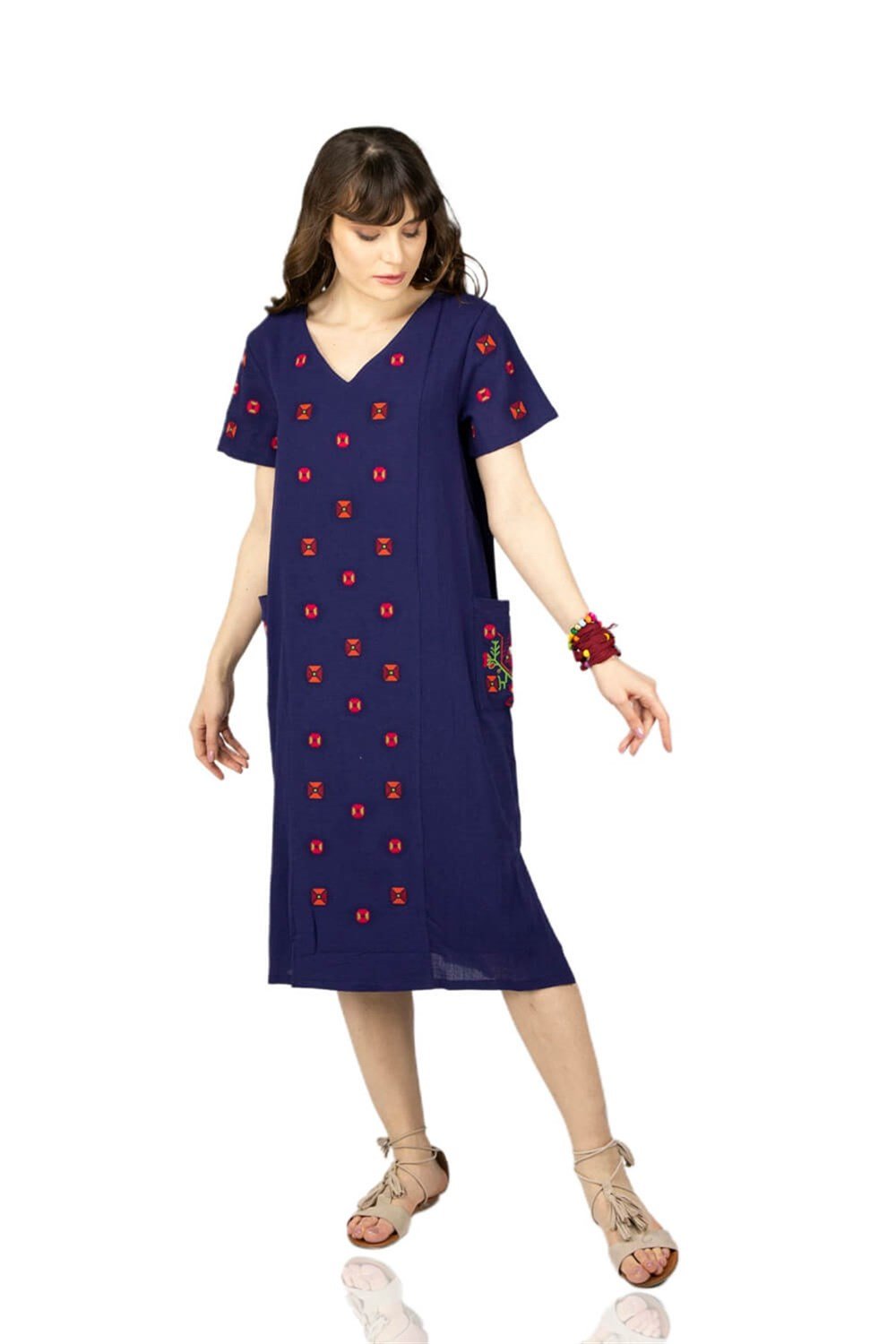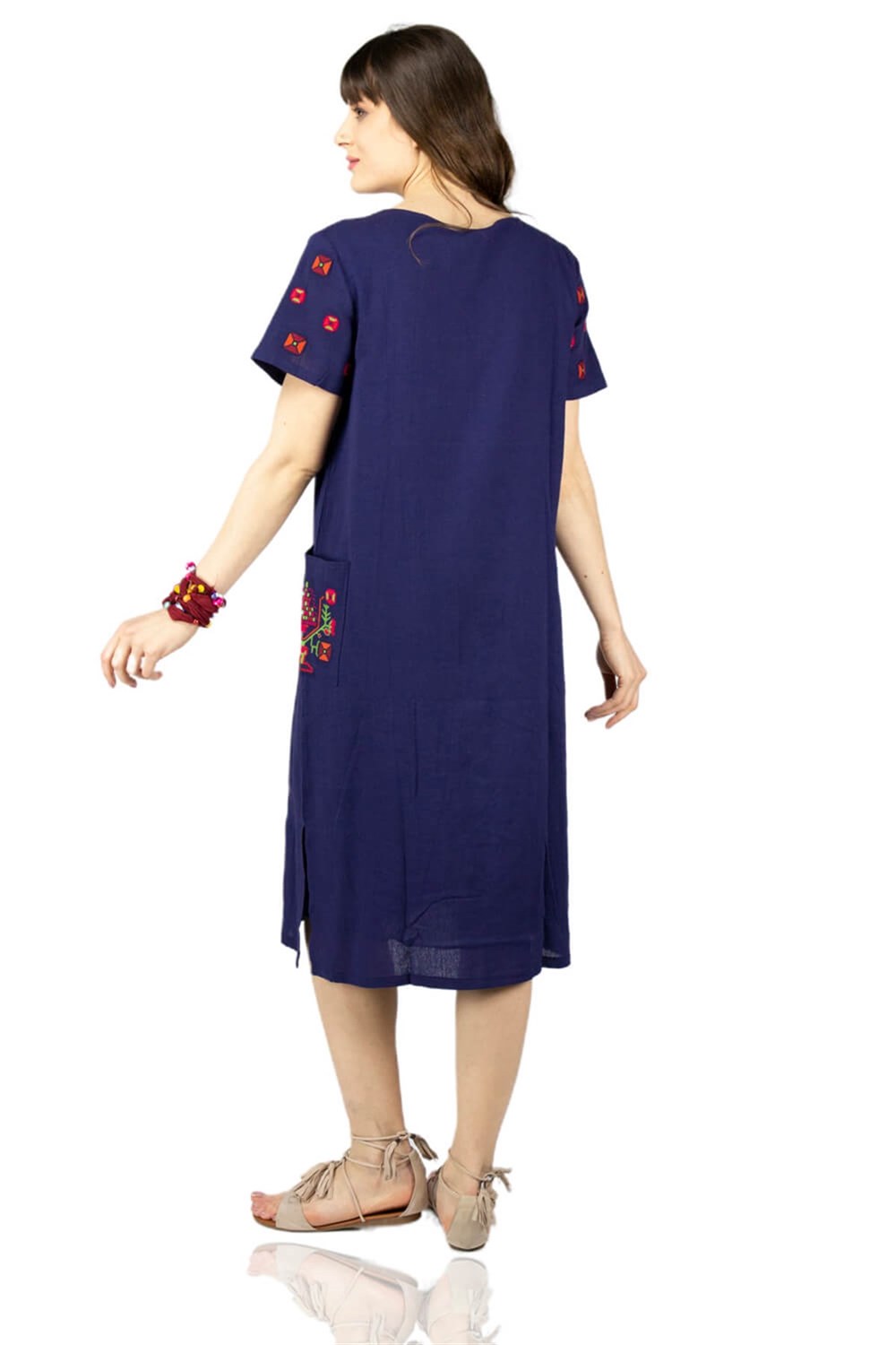 Toptan Aylin Şile Bezi Elbise Lacivert