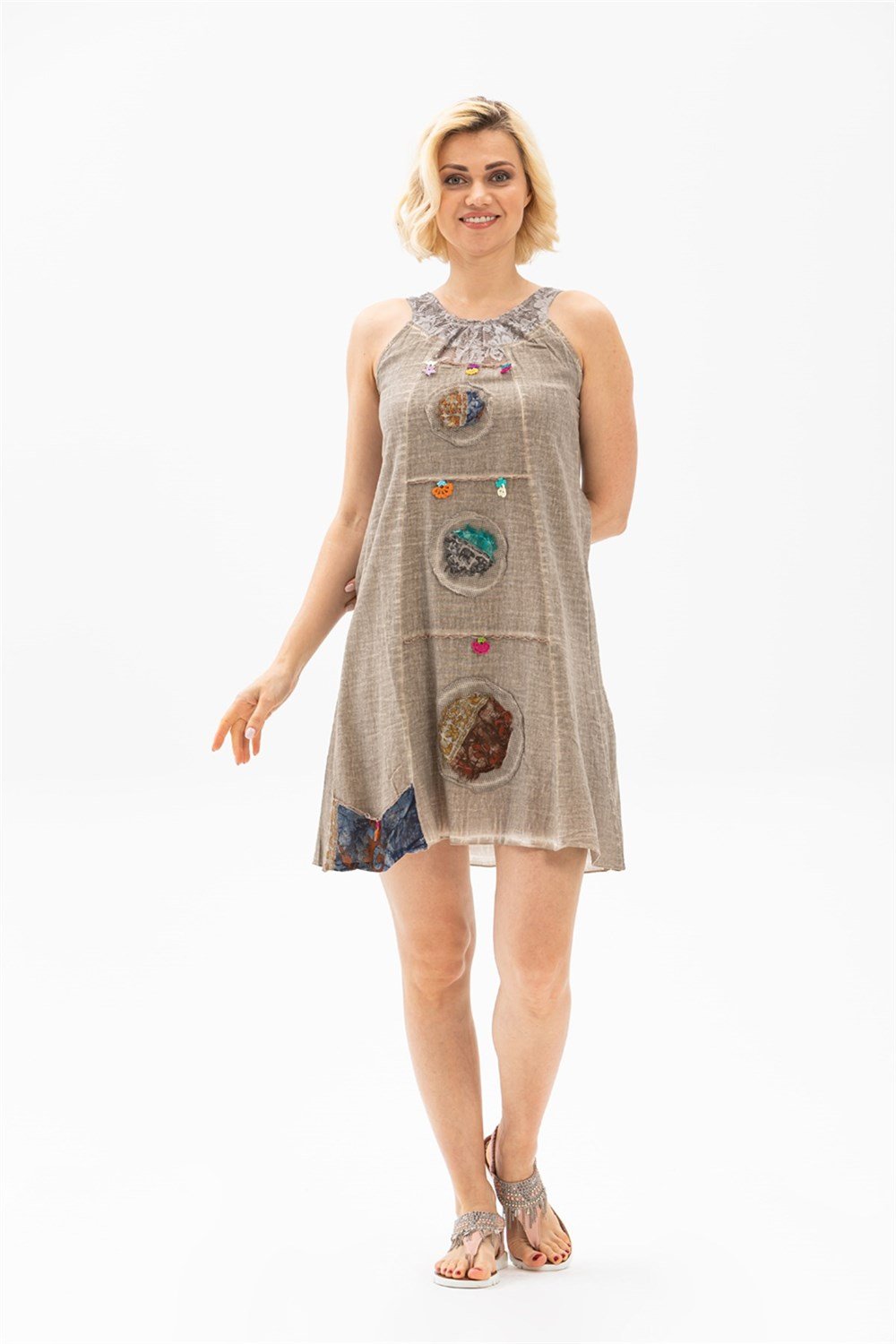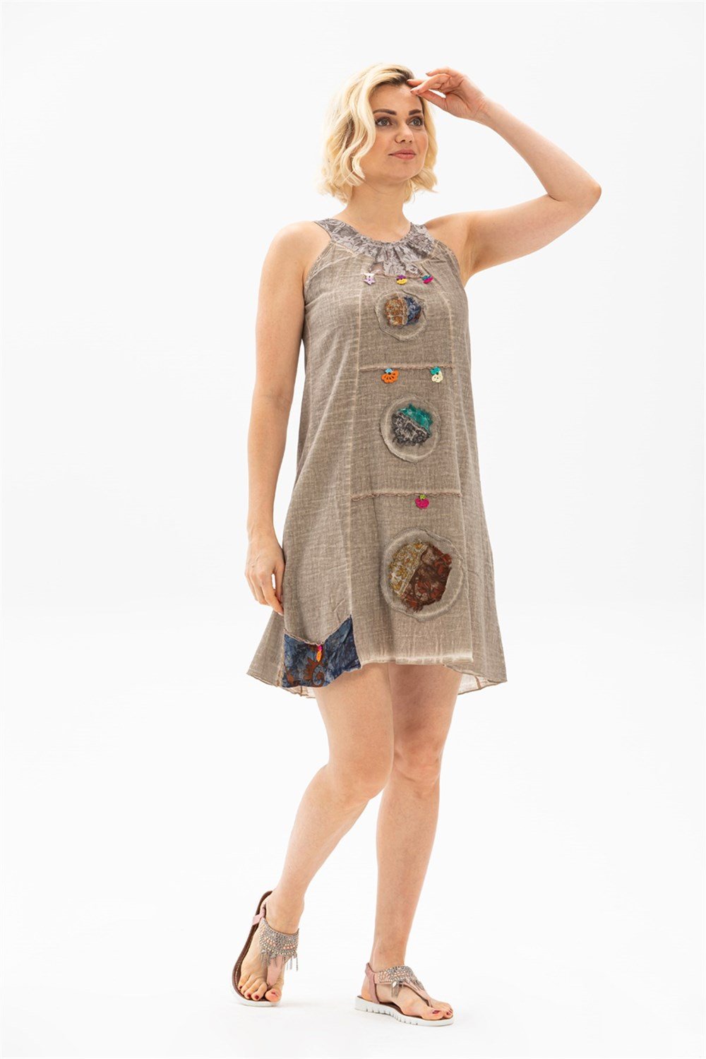 Toptan Beliz Şile Bezi Elbise Vizon (923.05)