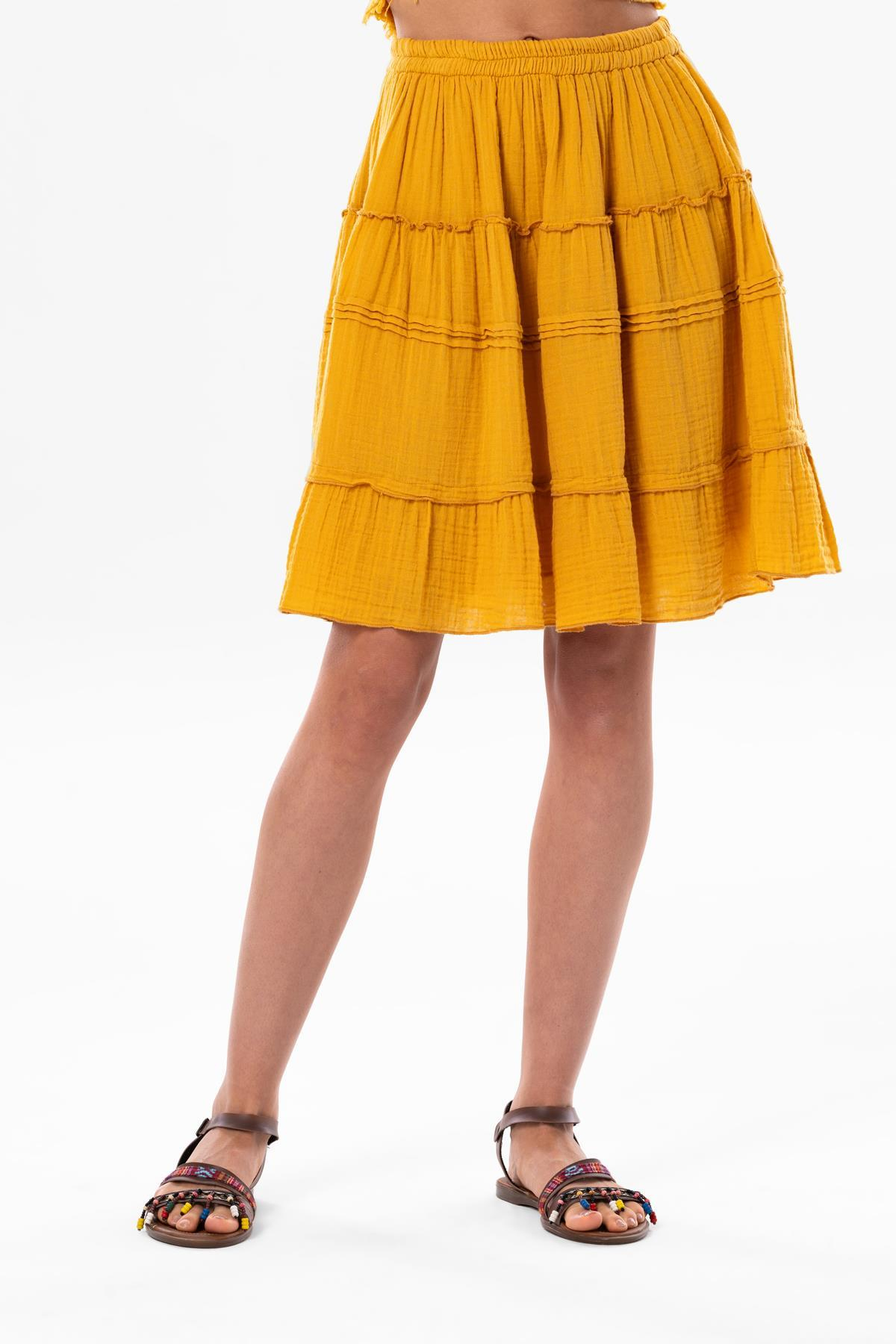 Benan Beli Lastikli Kısa Yazlık Müslin Etek Hardal Hrd