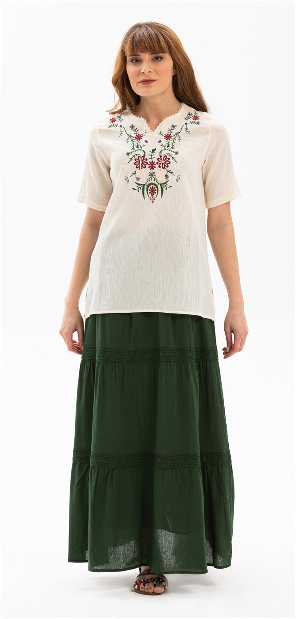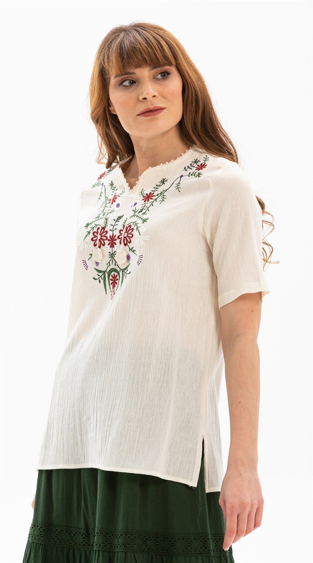 Toptan Büyük Beden Şile Bezi Kısa Kol Dilara Bluz Krem (211.07)