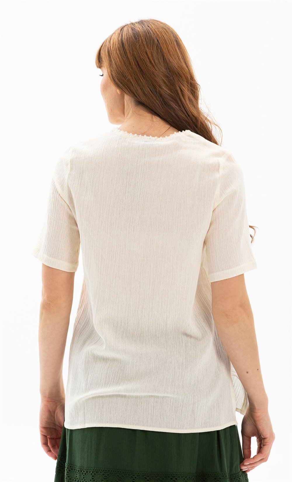 Toptan Büyük Beden Şile Bezi Kısa Kol Dilara Bluz Krem