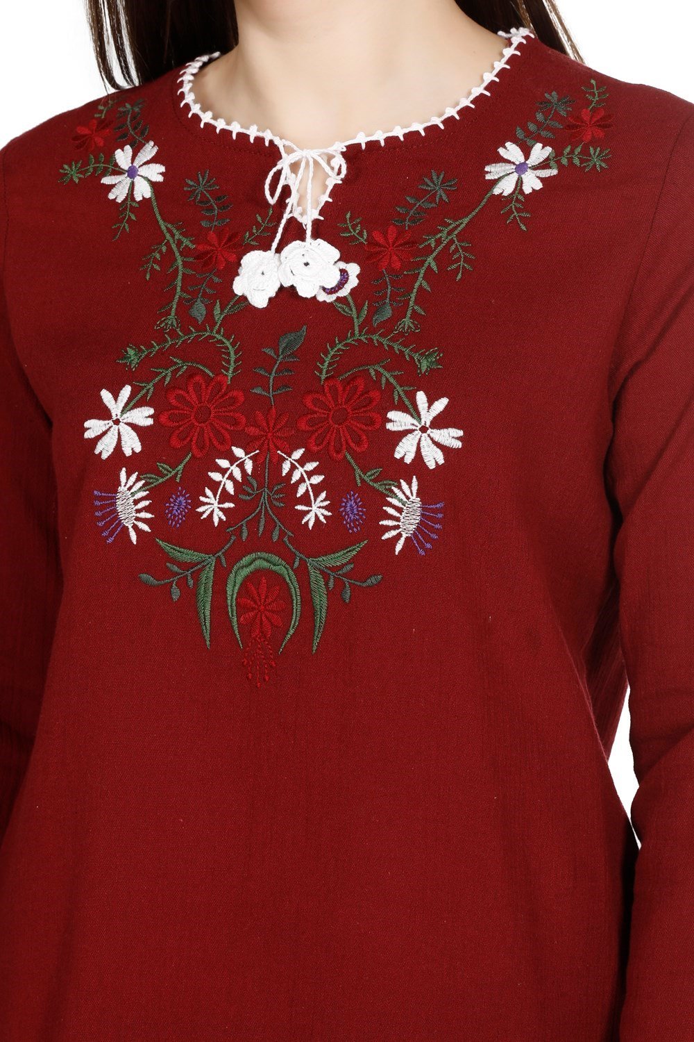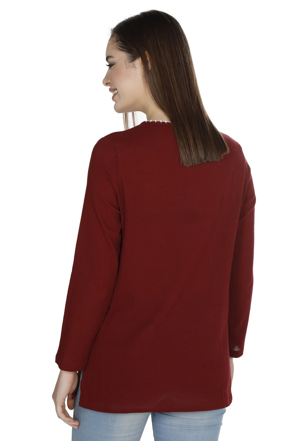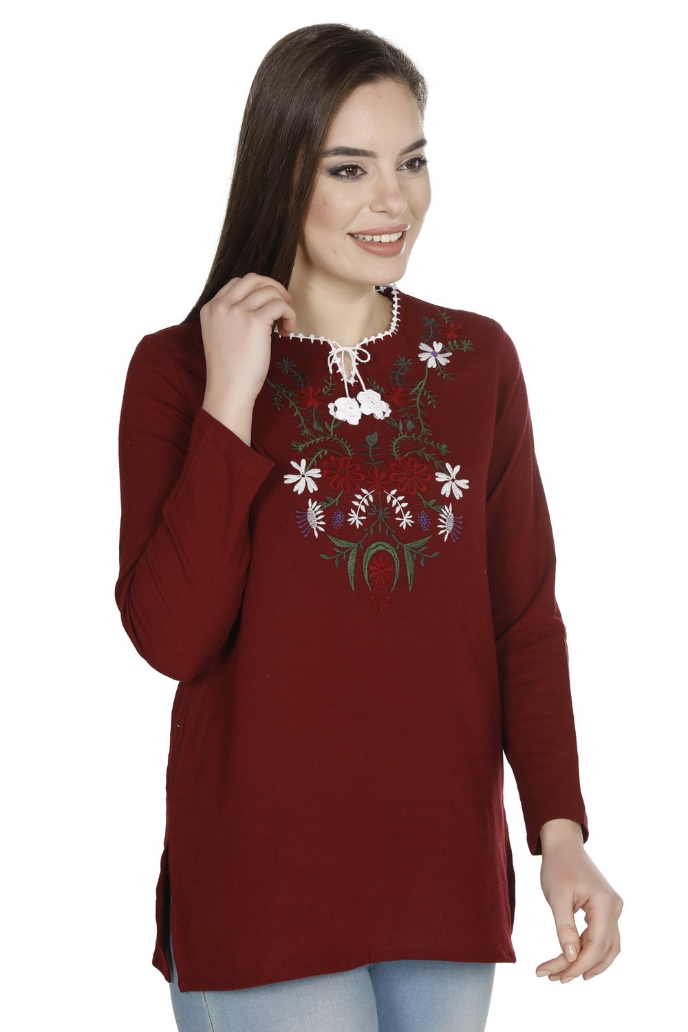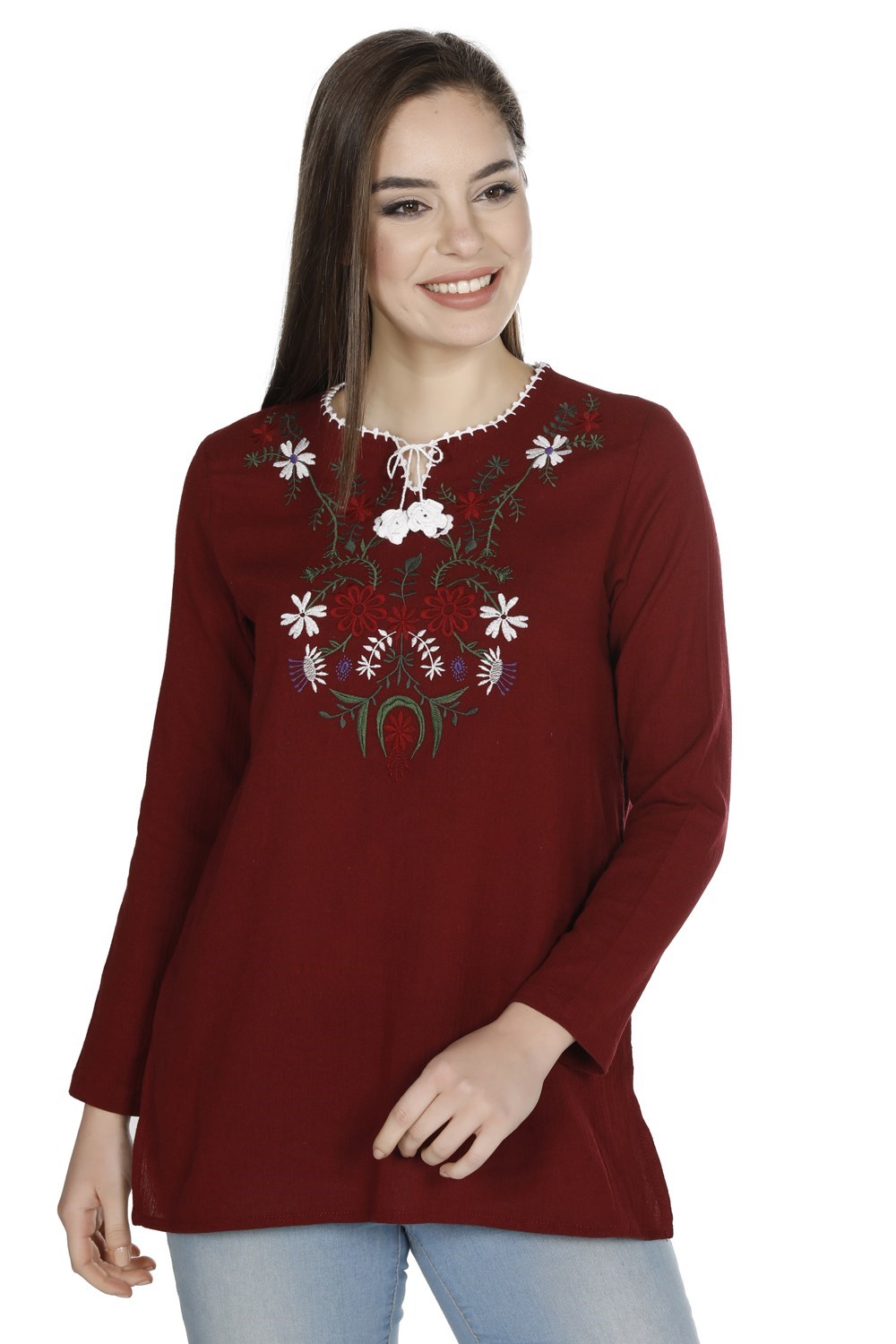 Toptan Büyük Beden Uzun Kol Şile Bezi Dilara Bluz Bordo (212.14)