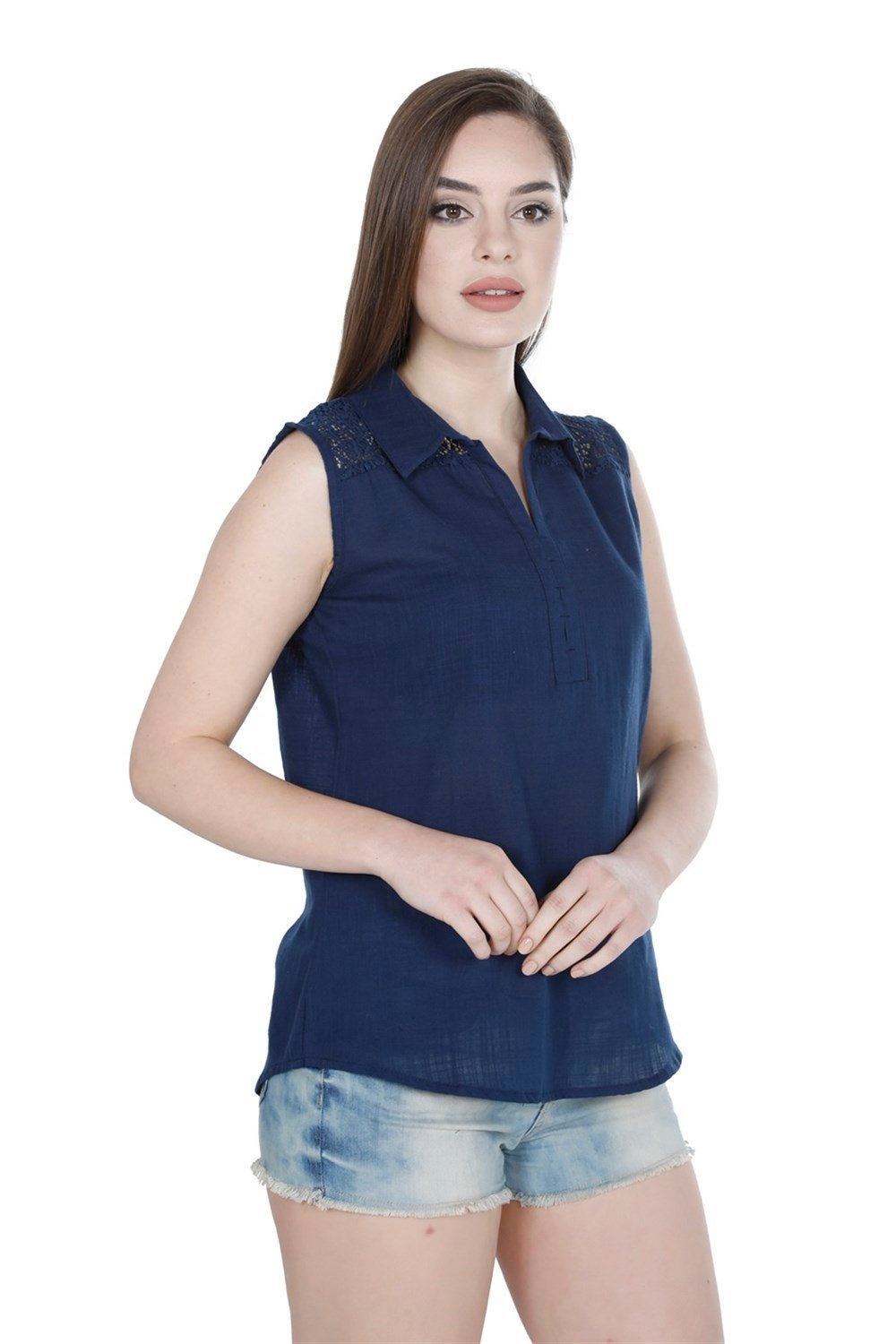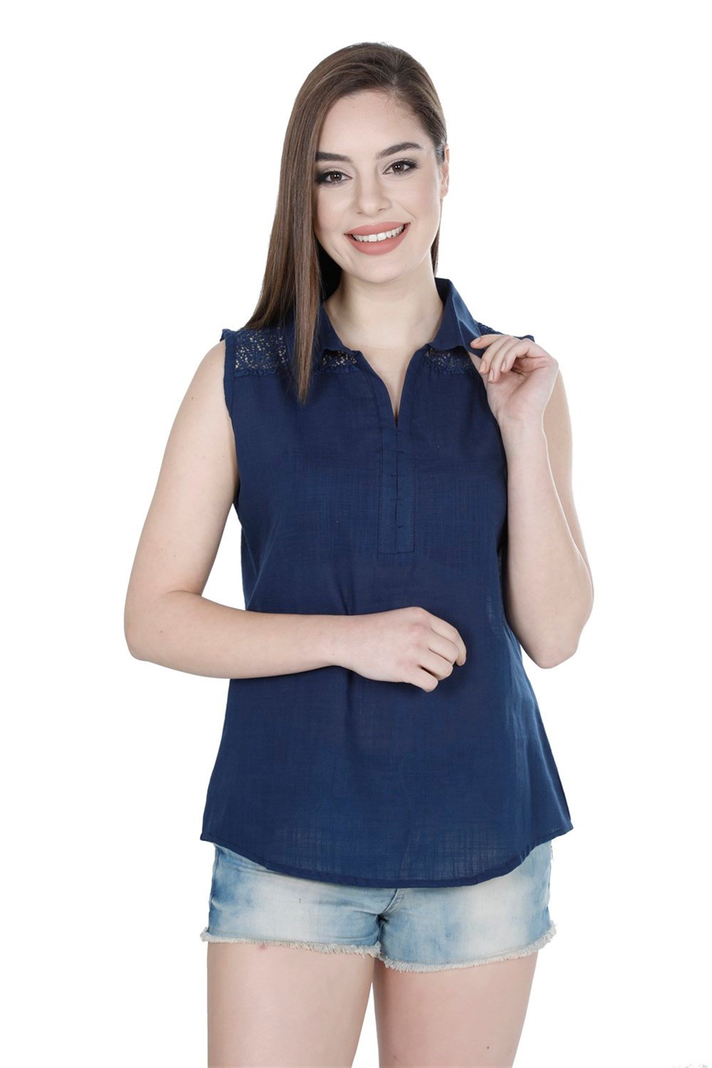 Toptan Dolunay Şile Bezi Bluz Lacivert