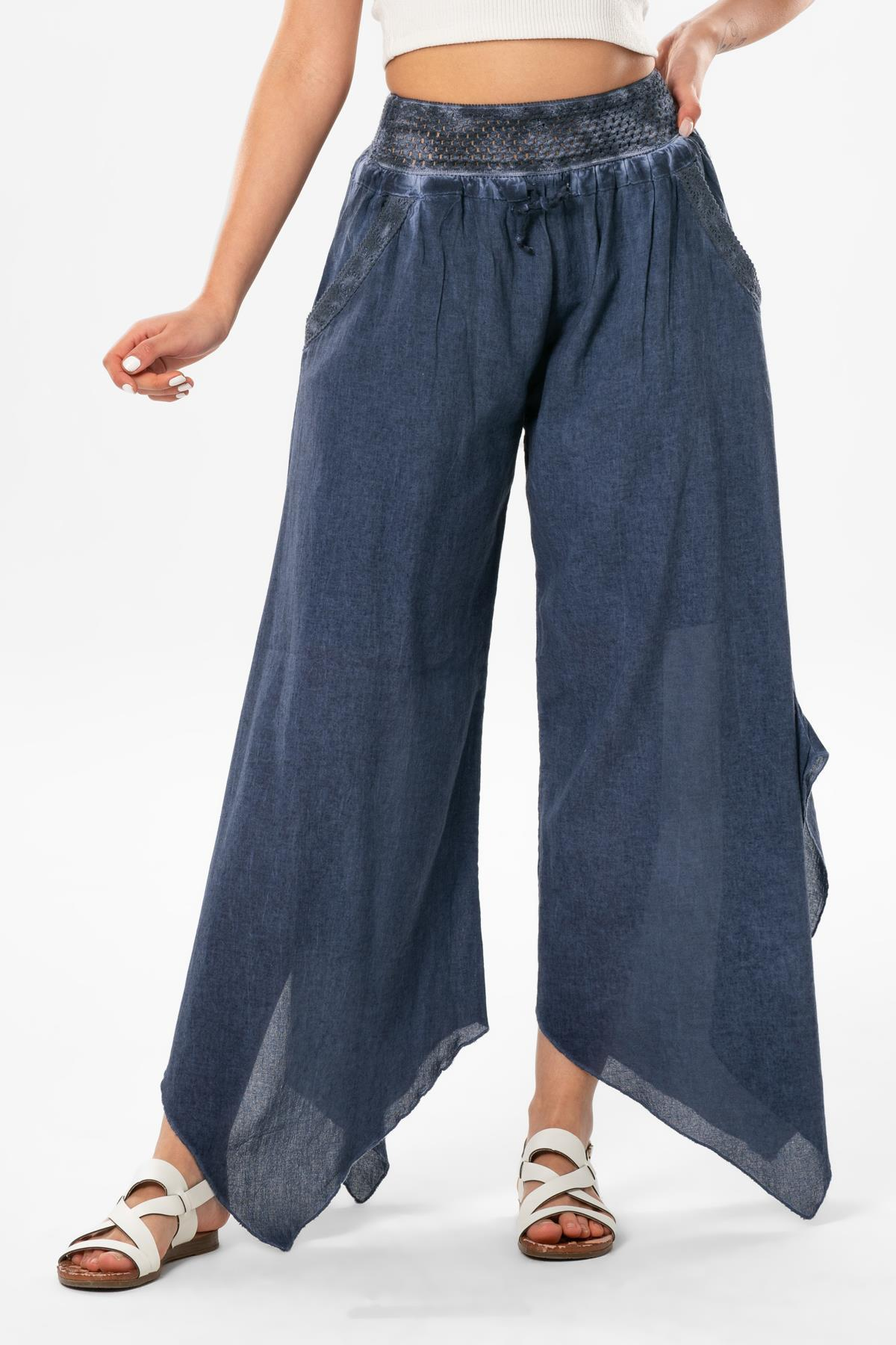 Güzide Şile Bezi Lastikli Simetrik Paça Yazlık Şalvar İndigo indg