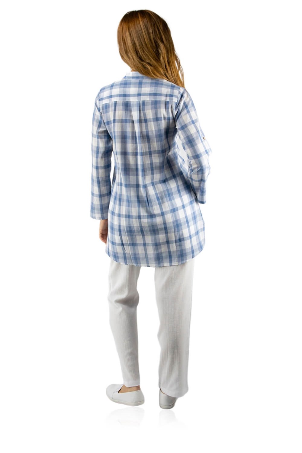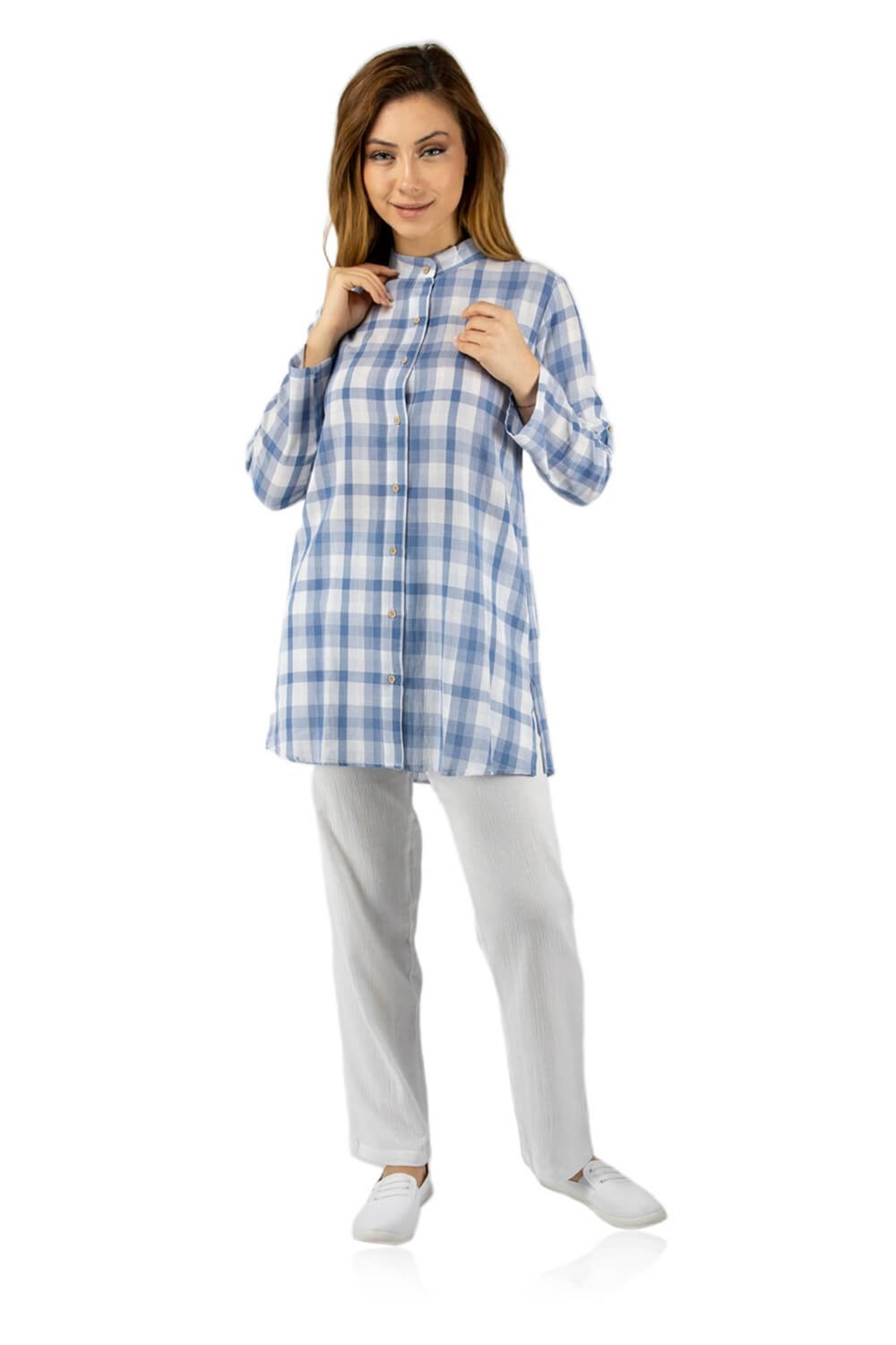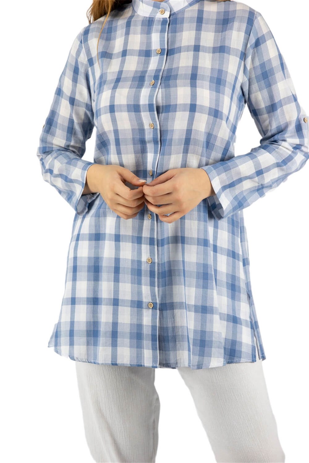 Kadın Hakim Yaka Tunik Açık Mavi Ekose - 152.03
