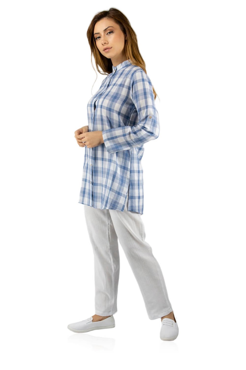 Toptan Kadın Hakim Yaka Şile Bezi Tunik Açık Mavi Ekose (152.03)