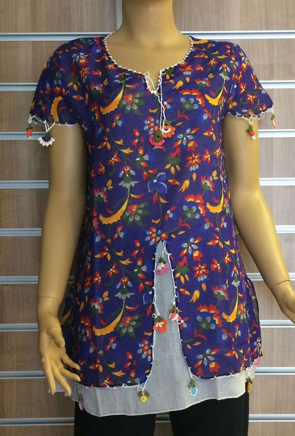 Ceyda Bluz Sarmaşık Desen Saks - BLZ.K.0004