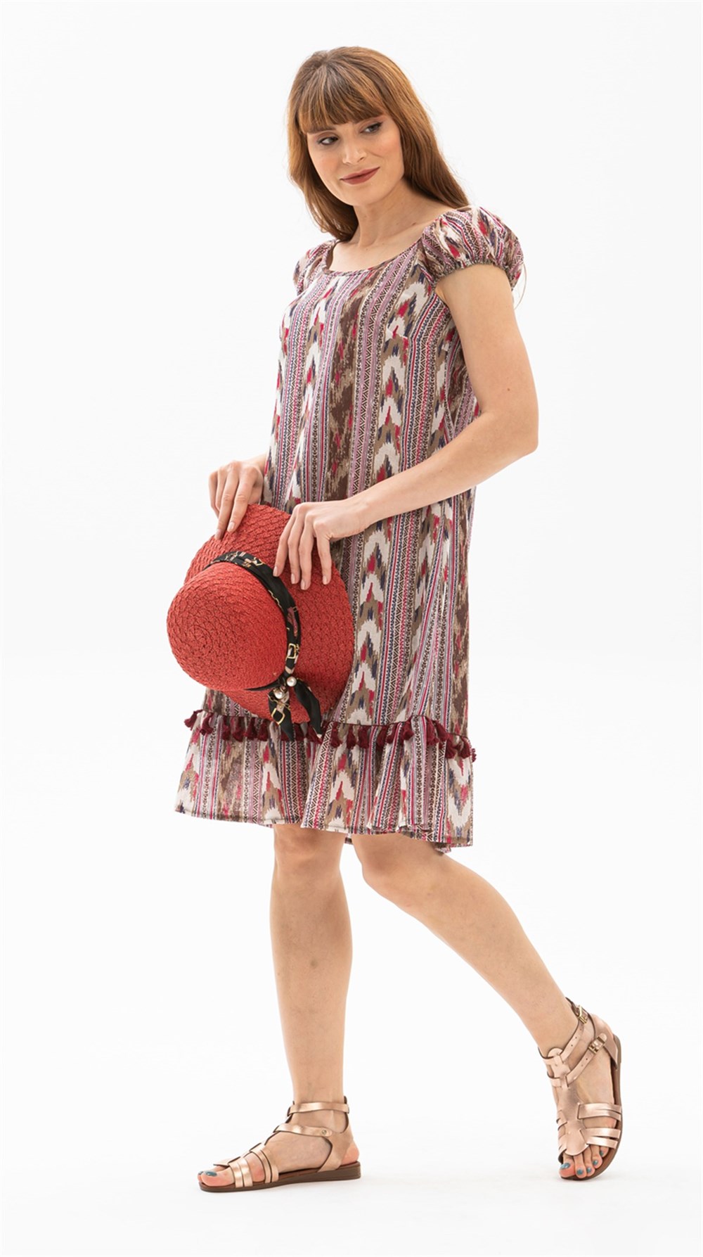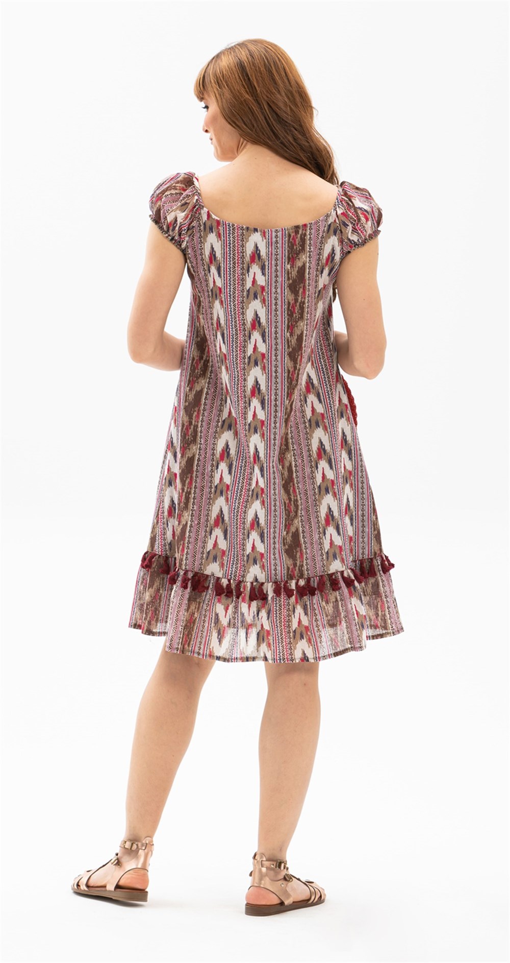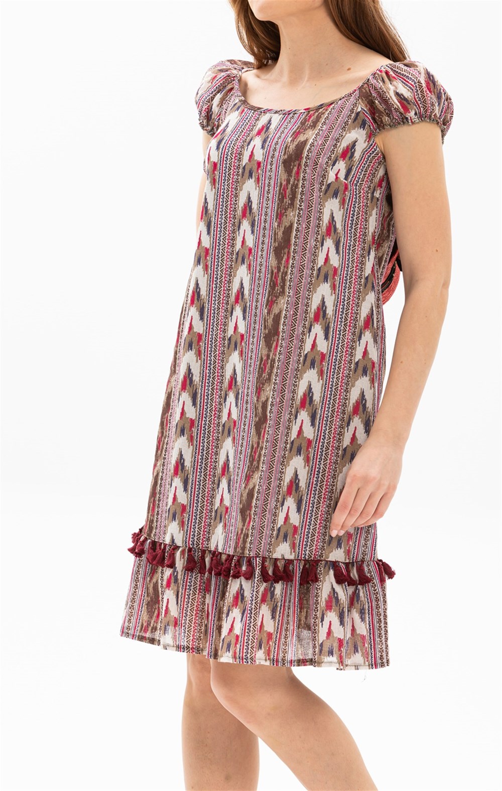 Toptan Kısa Kol Lara Şile Bezi Kilim Desen Elbise Kilim Desen (ELB.K.0106)