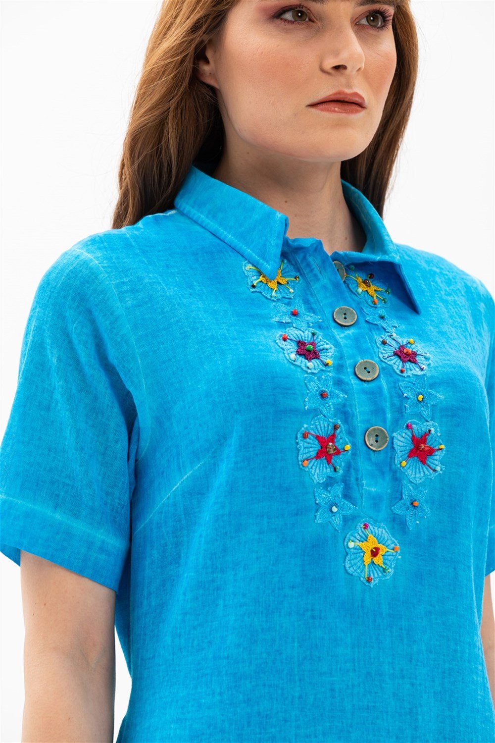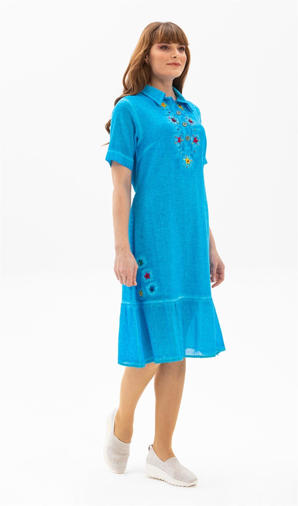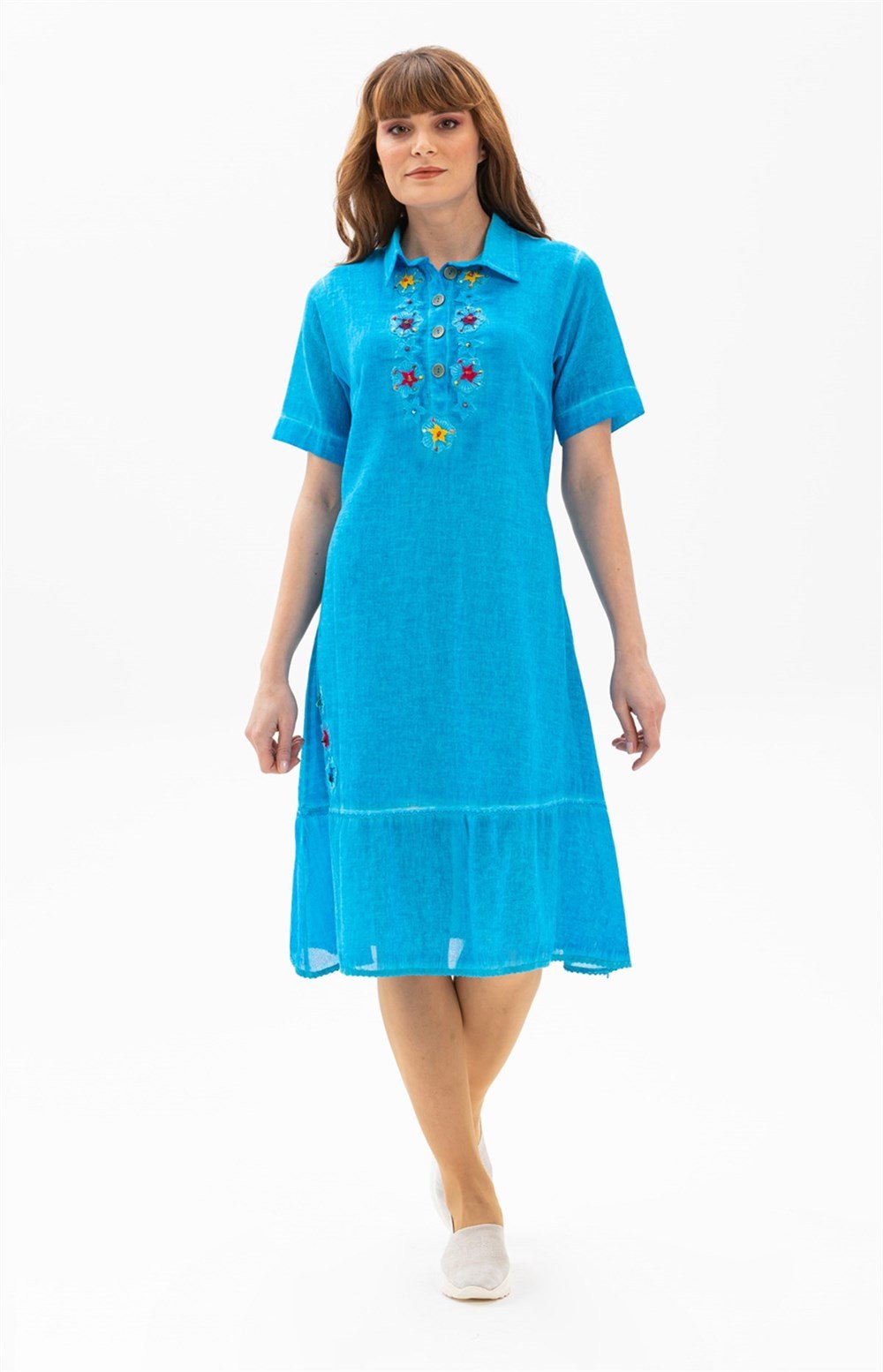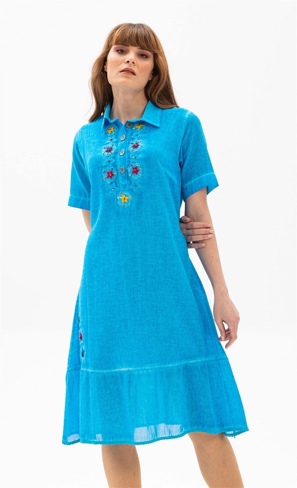 Toptan Kısa Kol Şile Bezi Ayfer Elbise Turkuaz (ELB.K.0112)