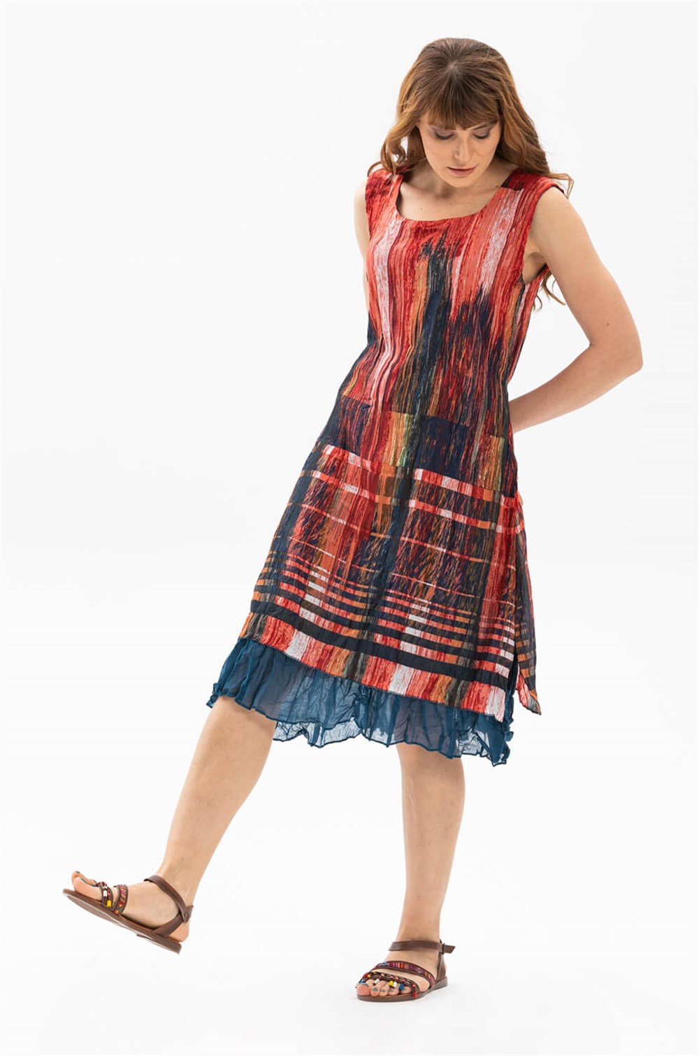 Toptan Kolsuz Defne Elbise Akar Desen Bordo