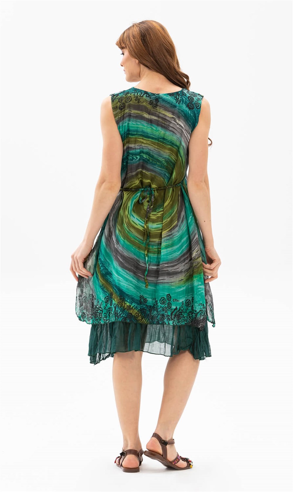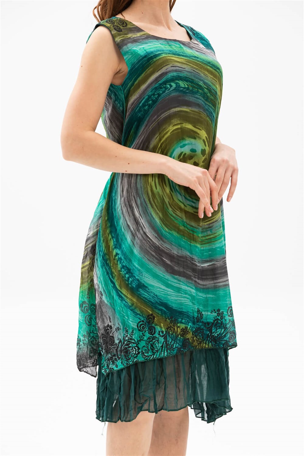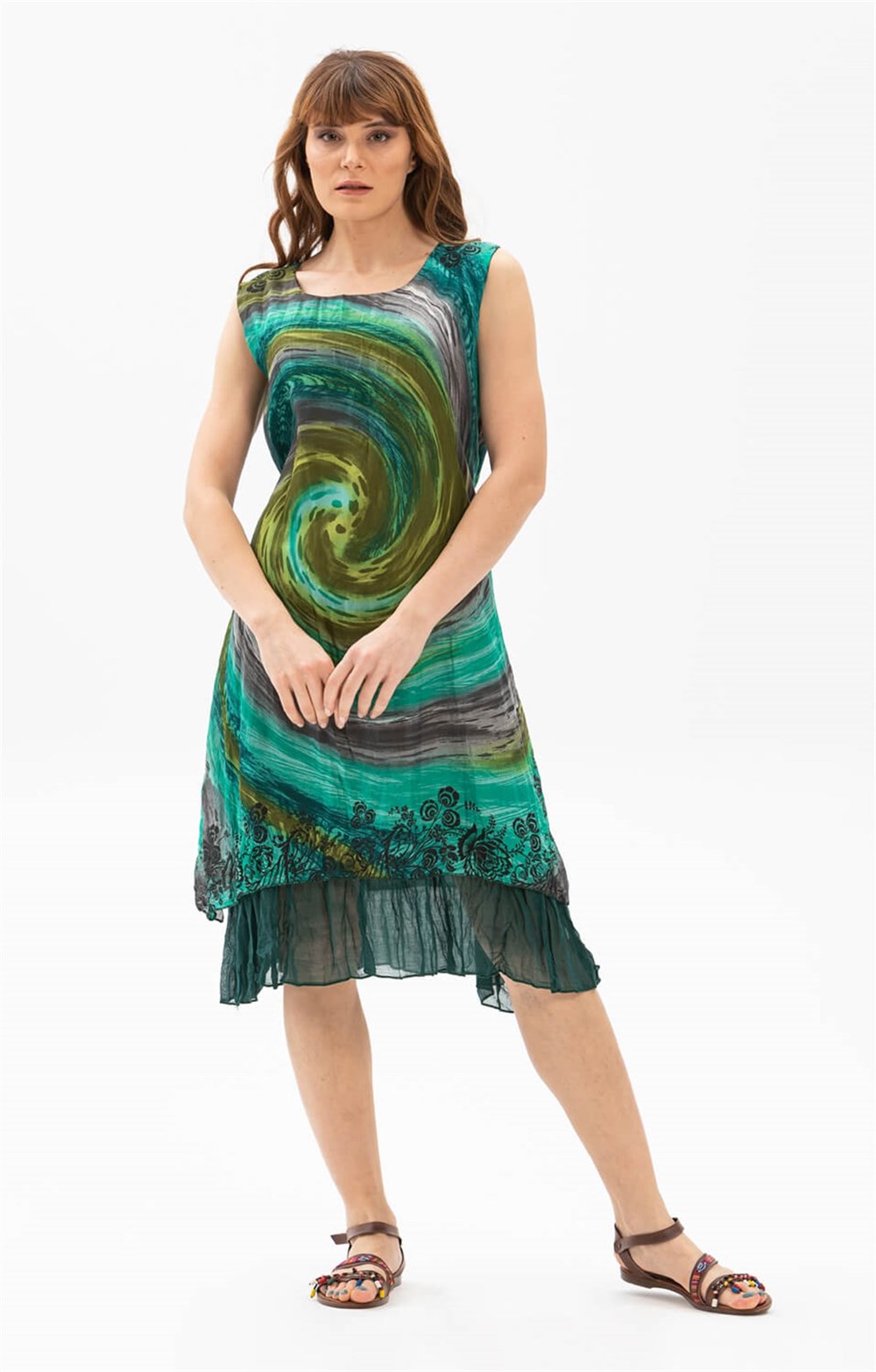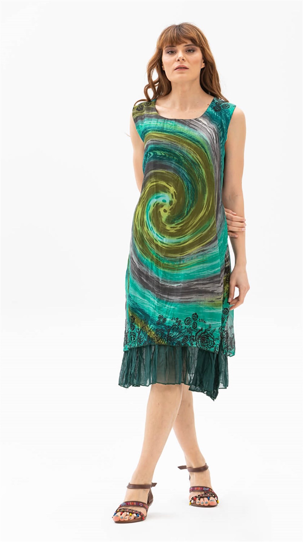 Toptan Kolsuz Defne Elbise Helezon Desen Yeşil (ELB.K.0061)