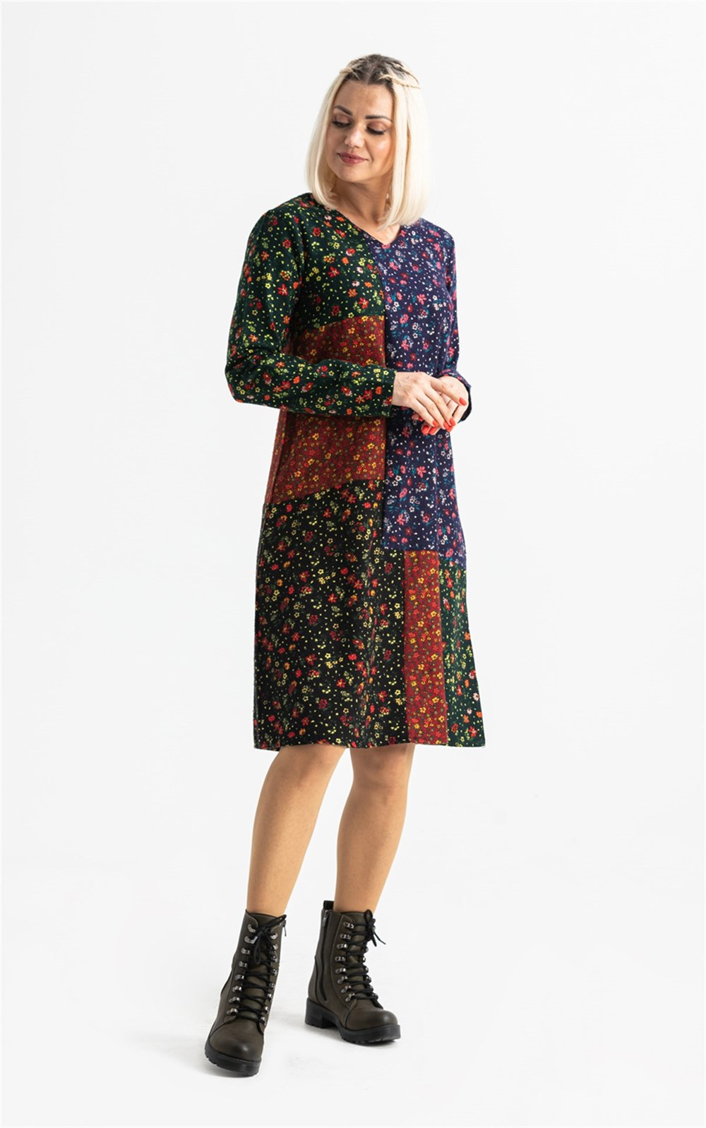 Uzun Kol Pazen Çiçekli Pelin Kısa Elbise Renkli Rnk