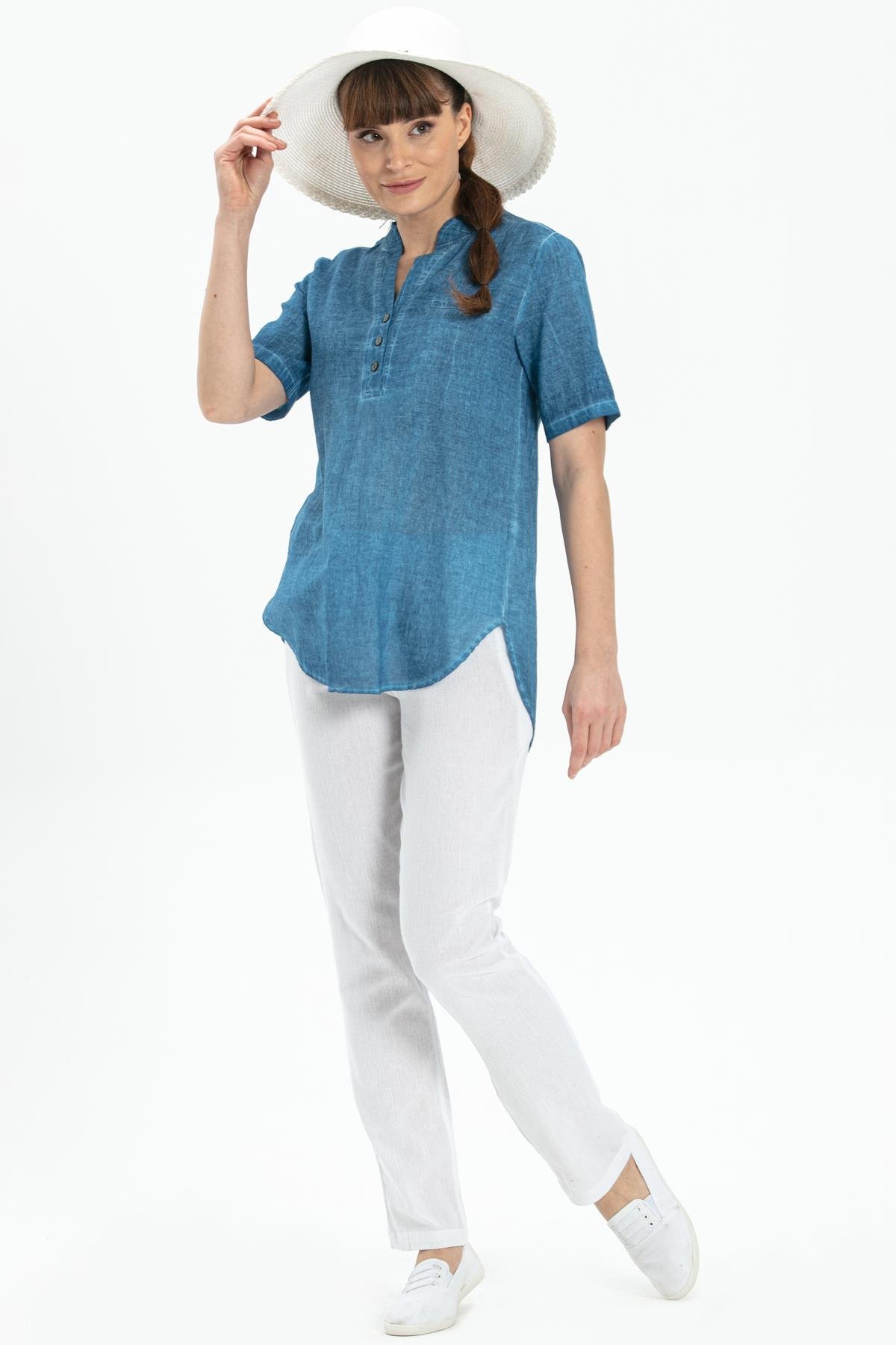 Toptan Kısa Kol Şile Bezi Akasya Bluz Kot Mavi