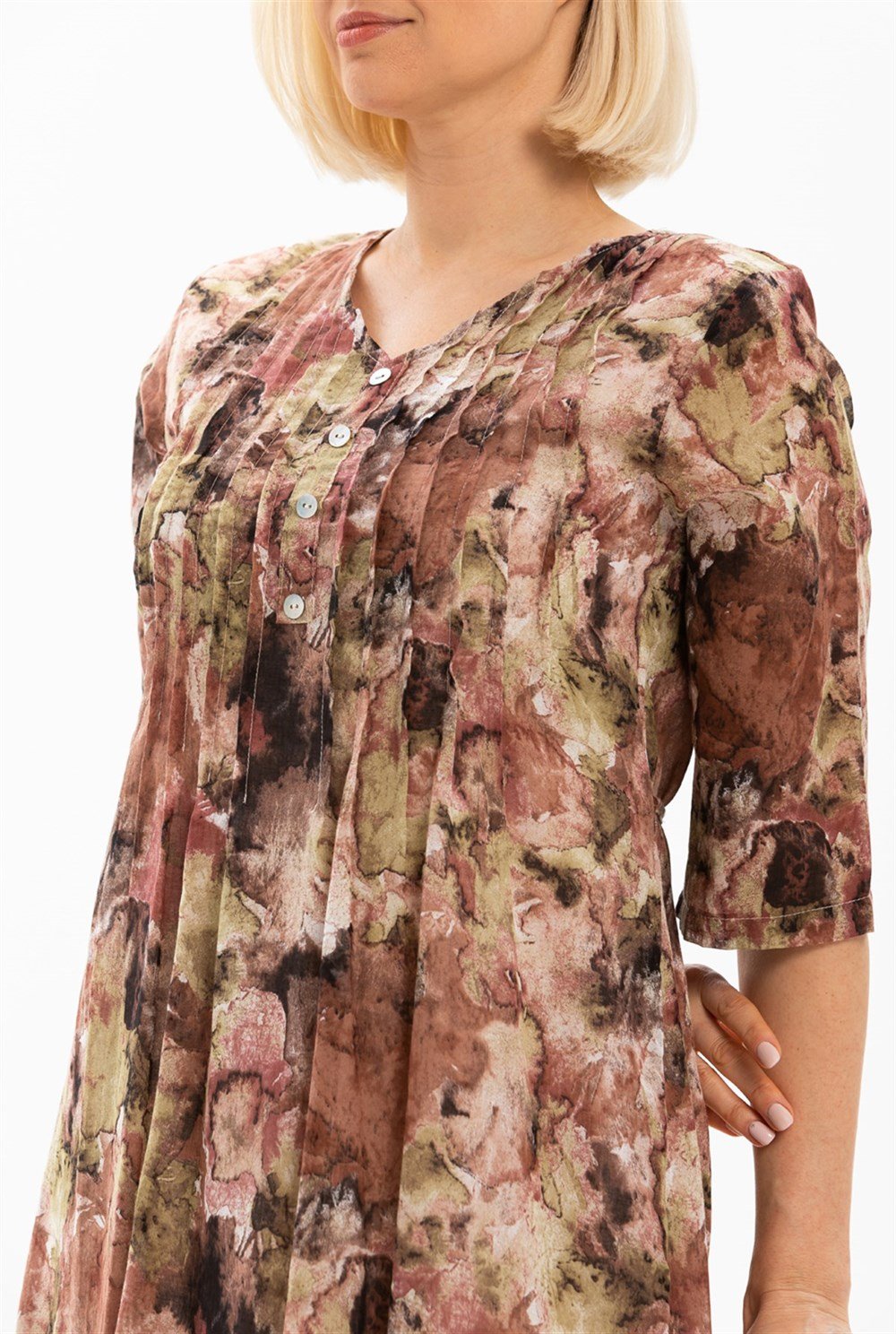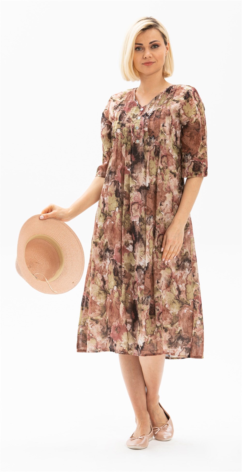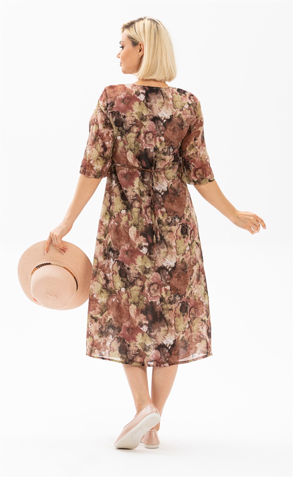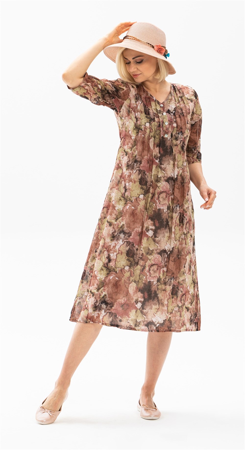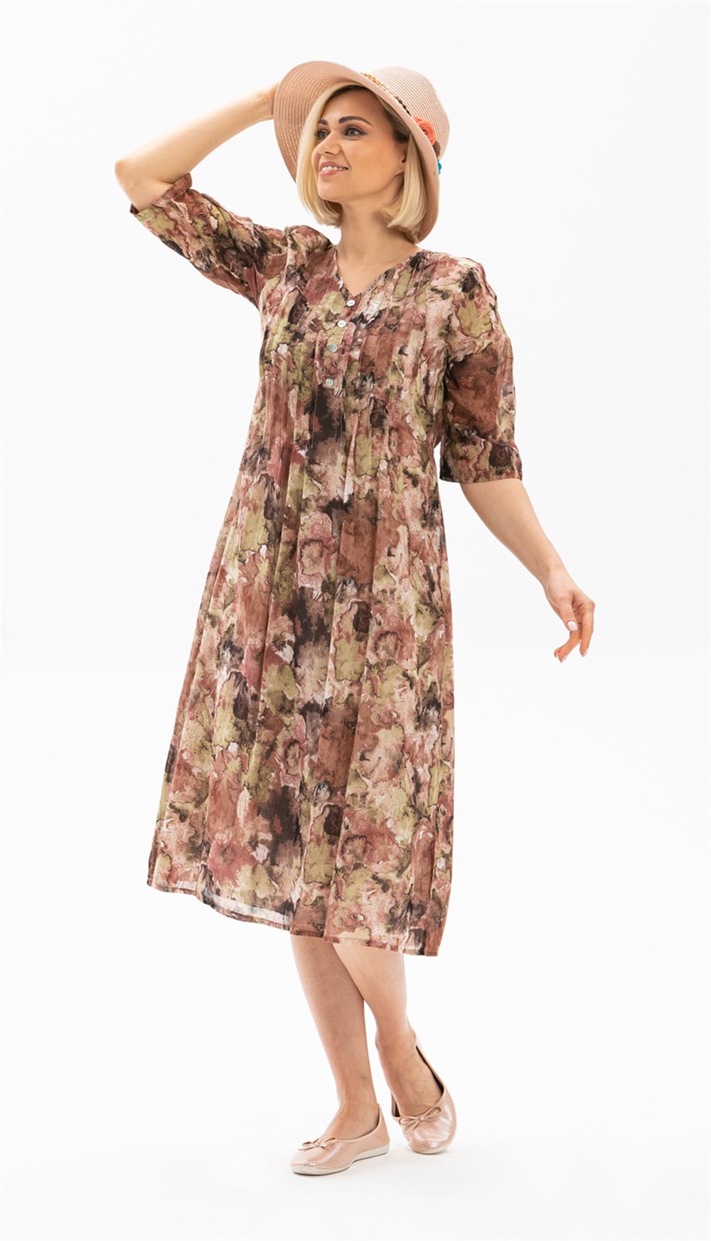 Nesrin Elbise Batik Desen Kahve - ELB.K.0098