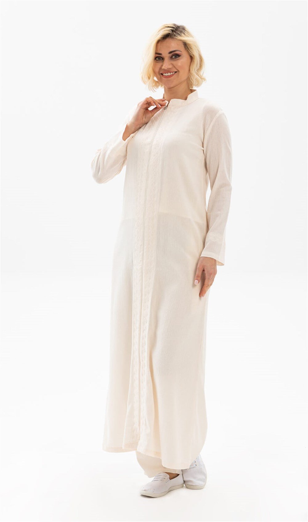 Toptan Uzun Kol Cemre Şile Bezi Tesettür Yazlık Ferace Krem (222.07)