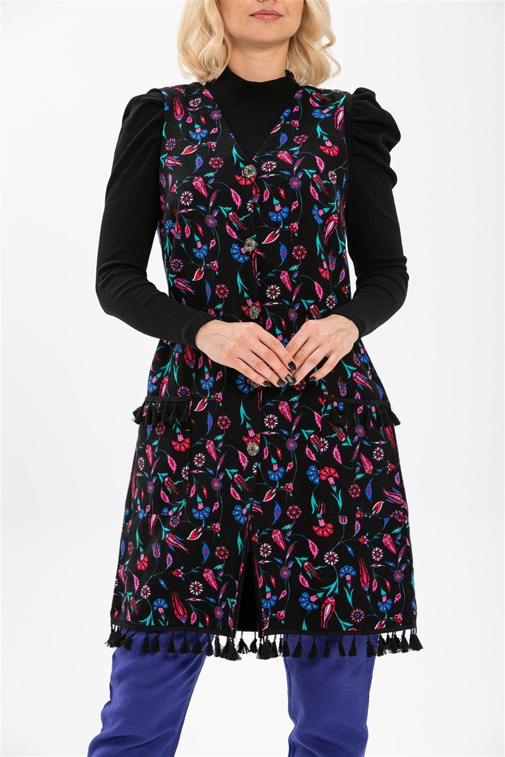 Toptan Tuğba Pazen Yelek Çini Desen Siyah