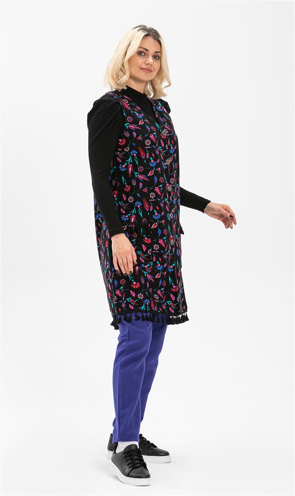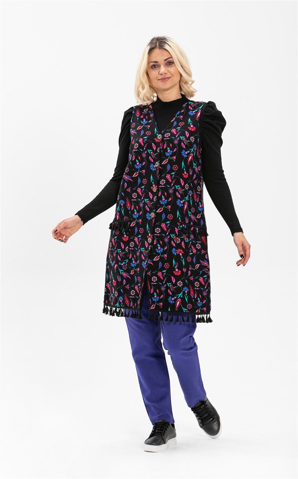 Tuğba Yelek Çini Desen Siyah - YLK.K.0014