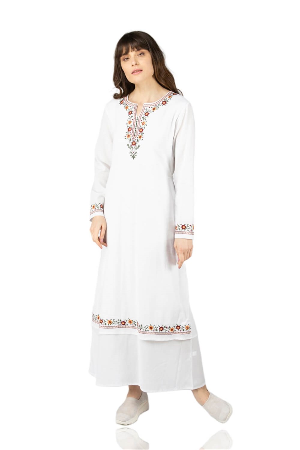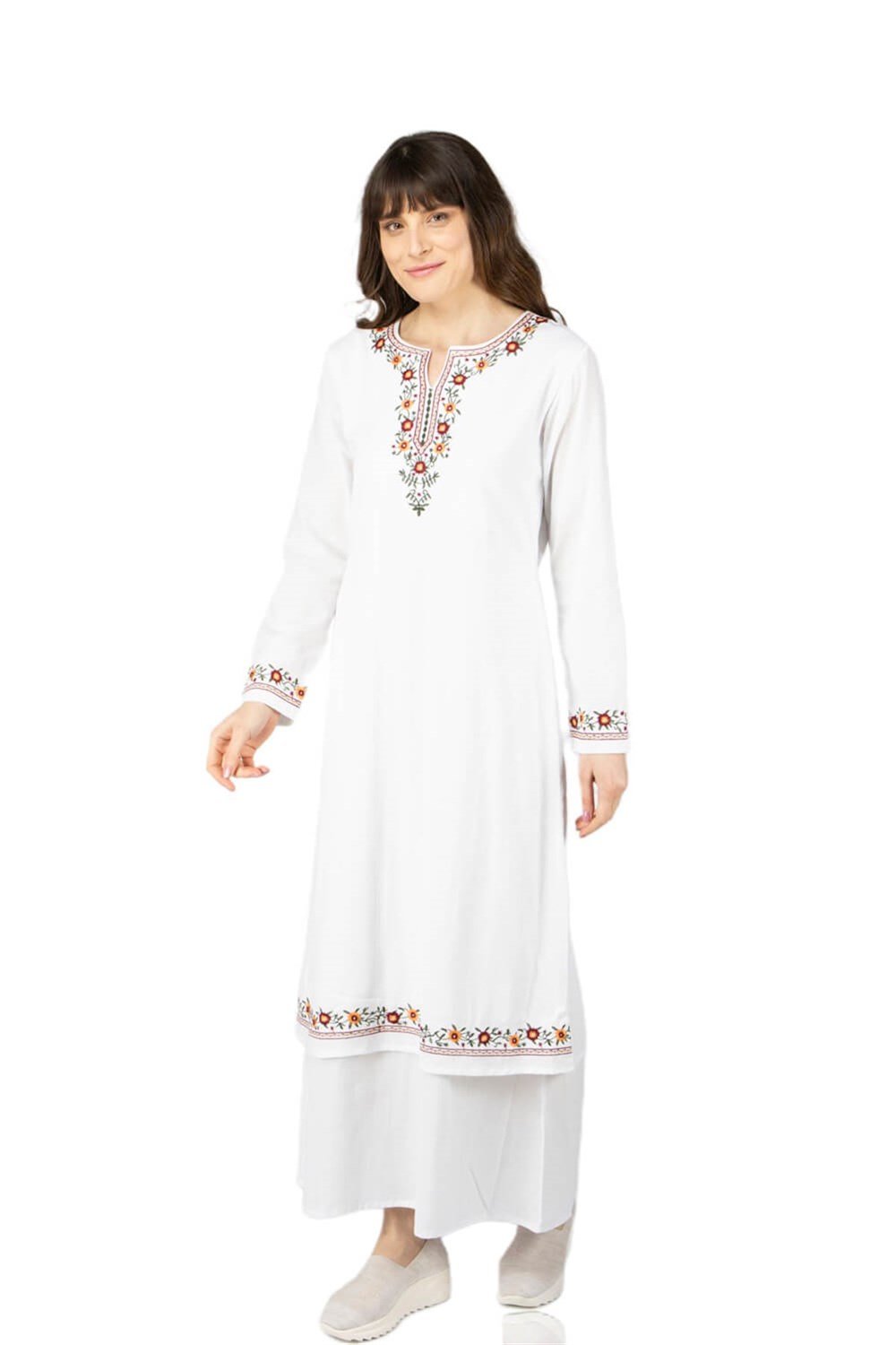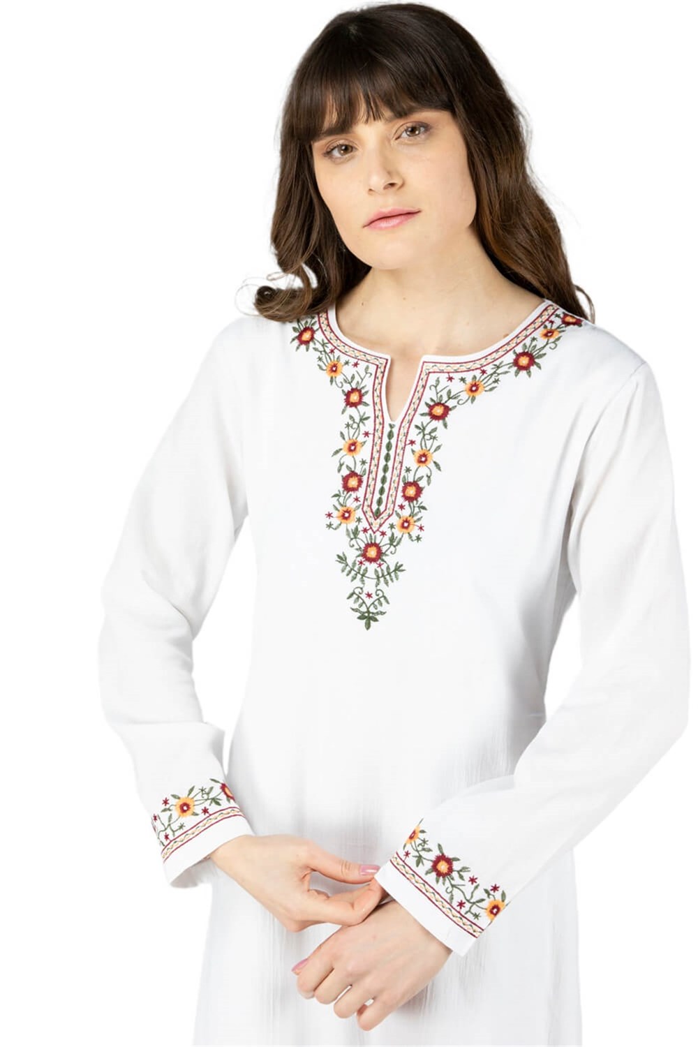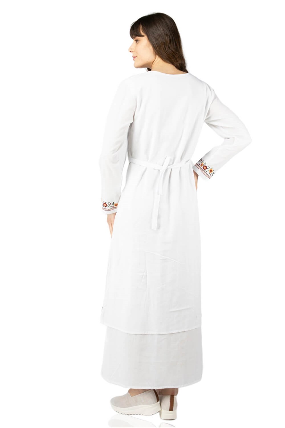 Toptan Uzun Kol Sibel Şile Bezi Elbise Beyaz (222.09)