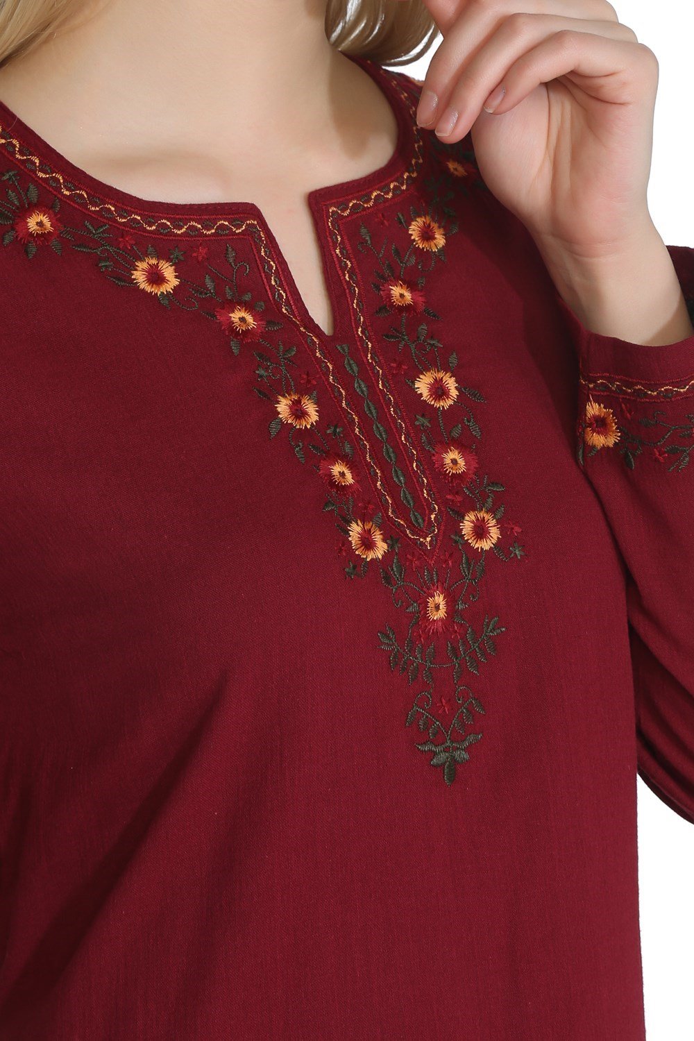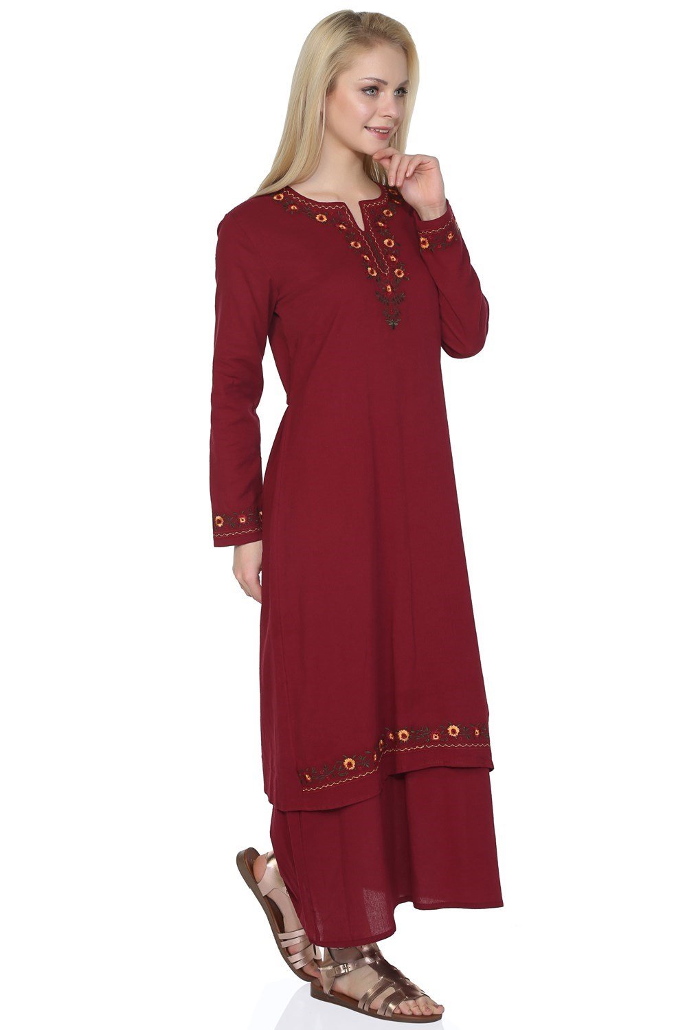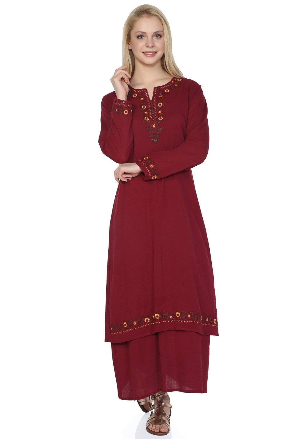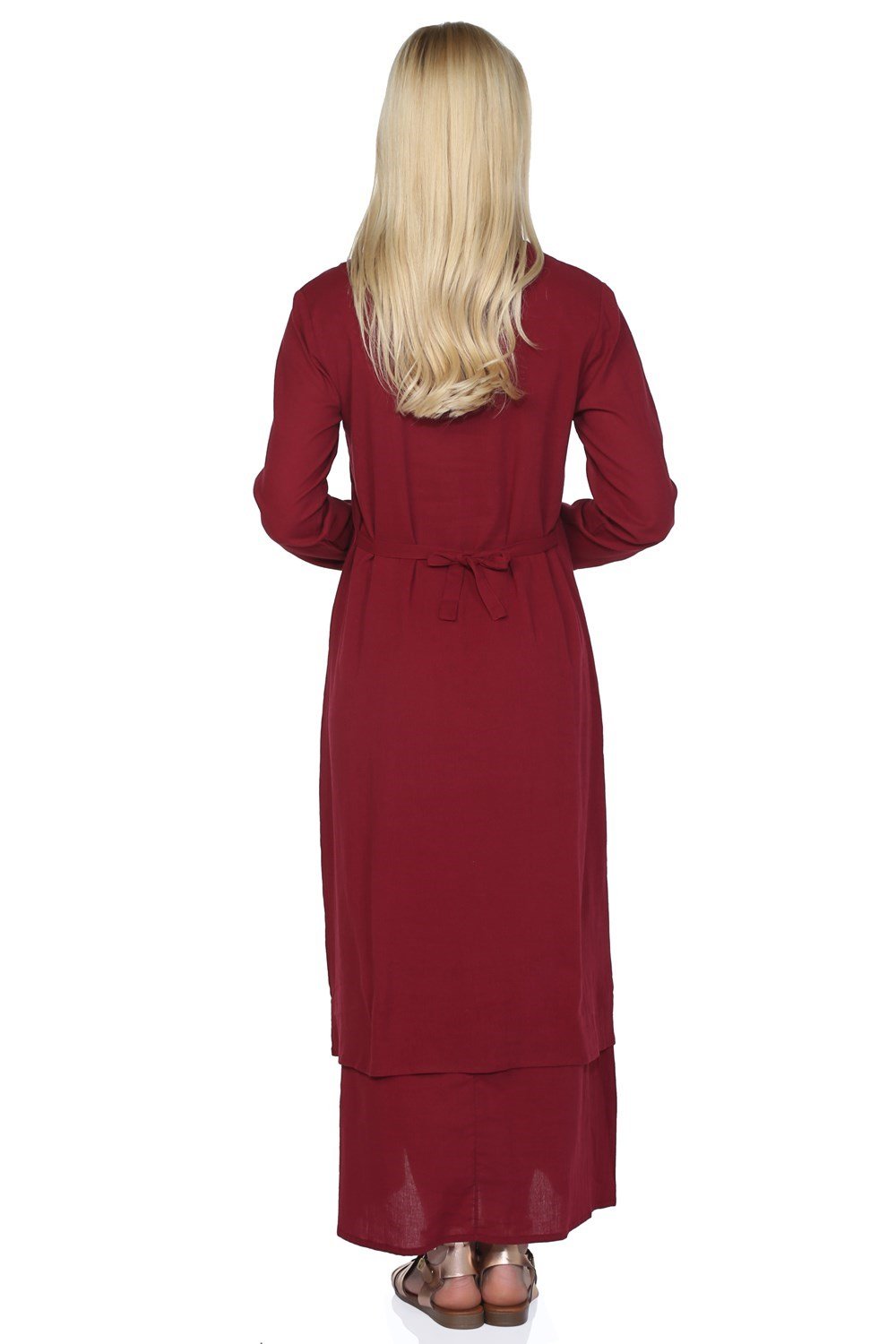 Toptan Uzun Kol Sibel Şile Bezi Elbise Bordo (222.09)