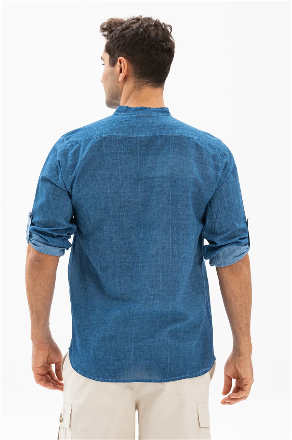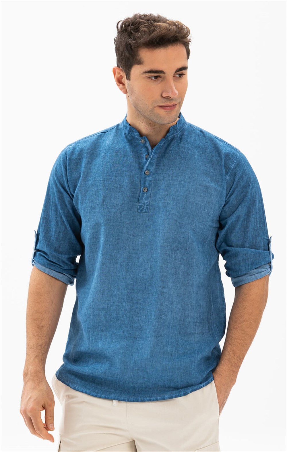 Toptan Uzun Kol Şile Bezi Bodrum Erkek T-Shirt Kot Mavi (982-01)