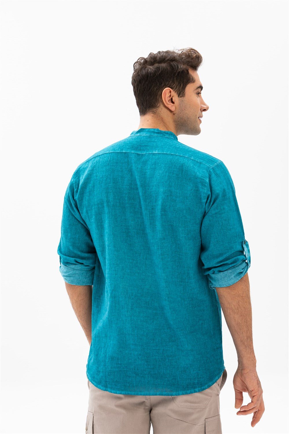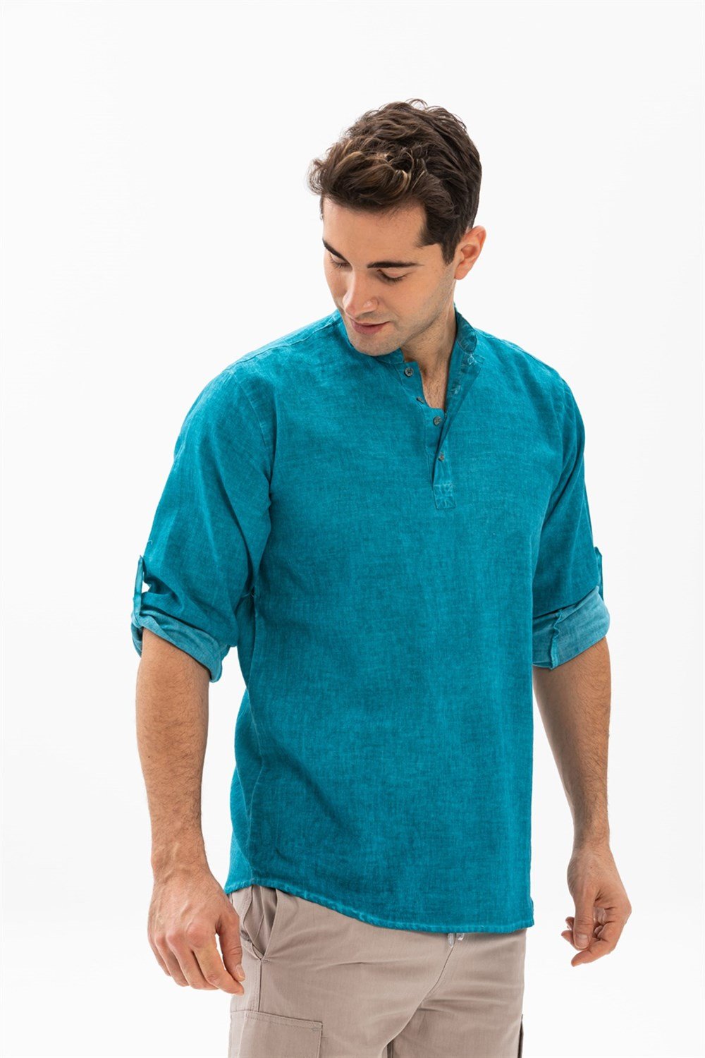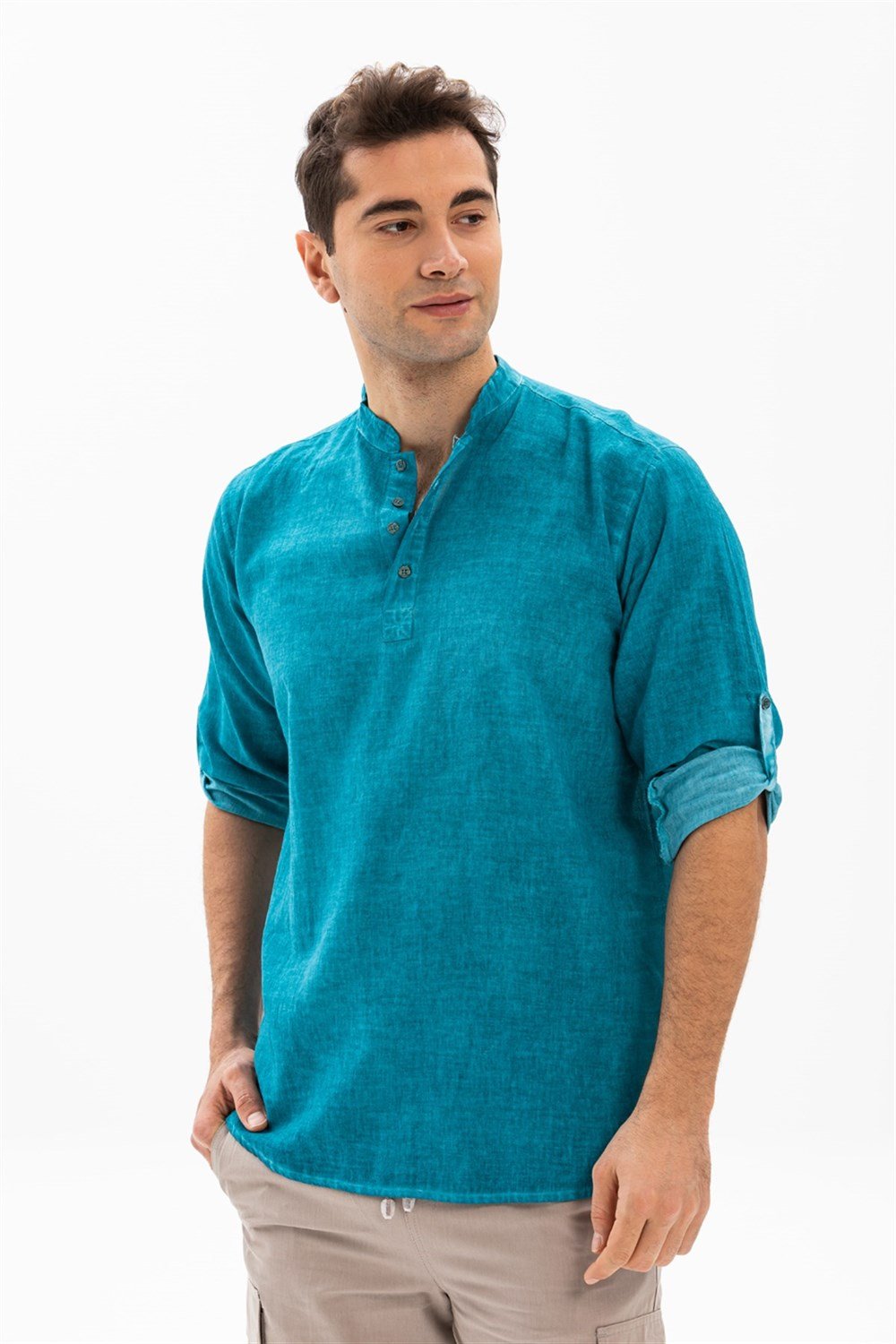 Toptan Uzun Kol Şile Bezi Bodrum Erkek T-shirtTurkuaz (982-01)