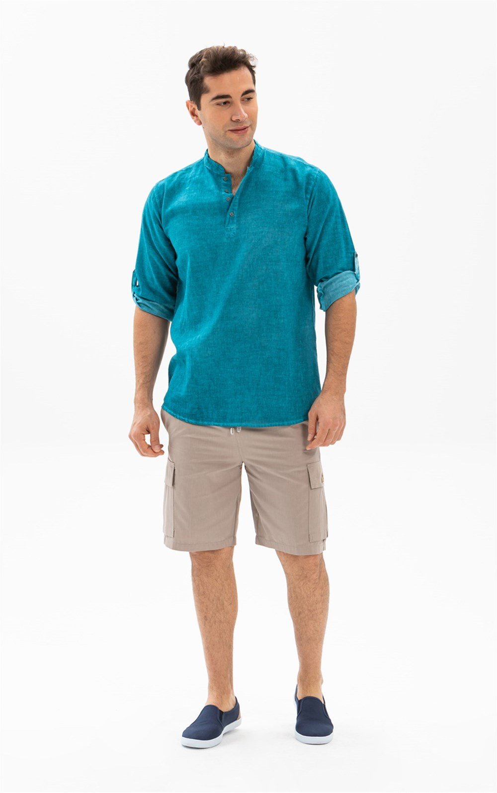 Toptan Uzun Kol Şile Bezi Bodrum Erkek T-shirtTurkuaz