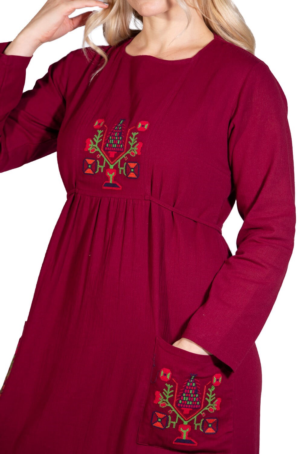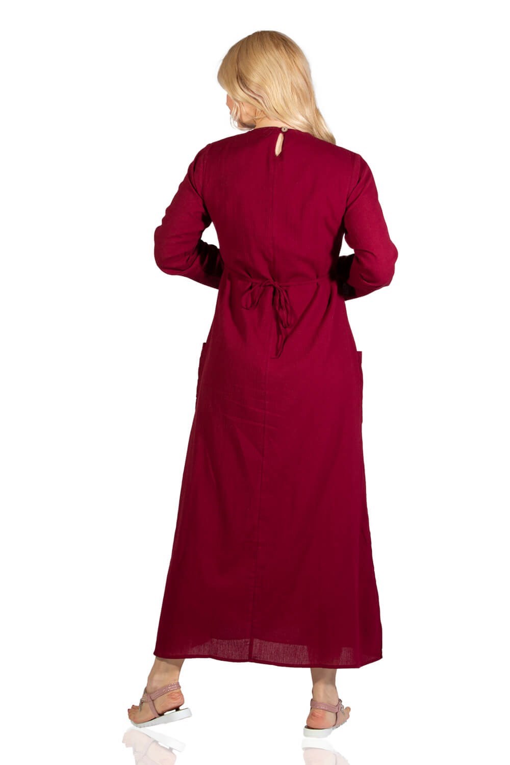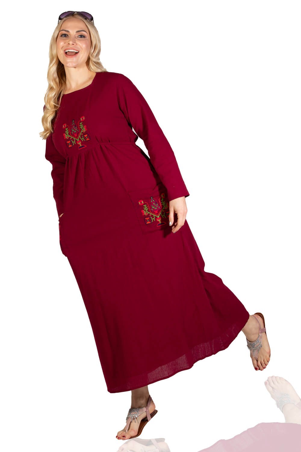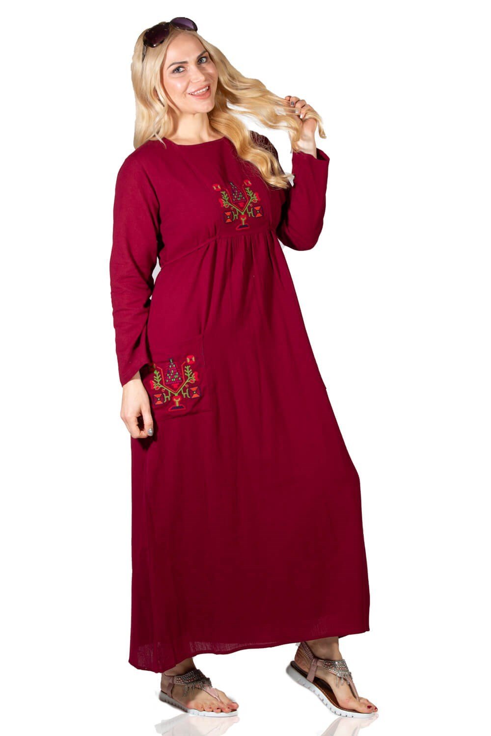 Toptan Uzun Kol Şile Bezi Melek Elbise Bordo (222.05)