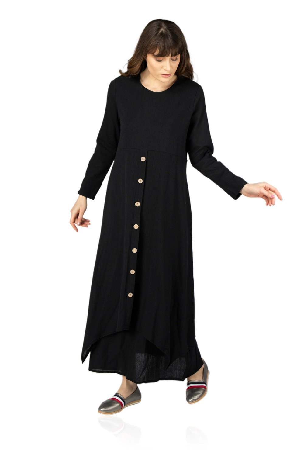 Toptan Zeliha Şile Bezi Elbise Siyah