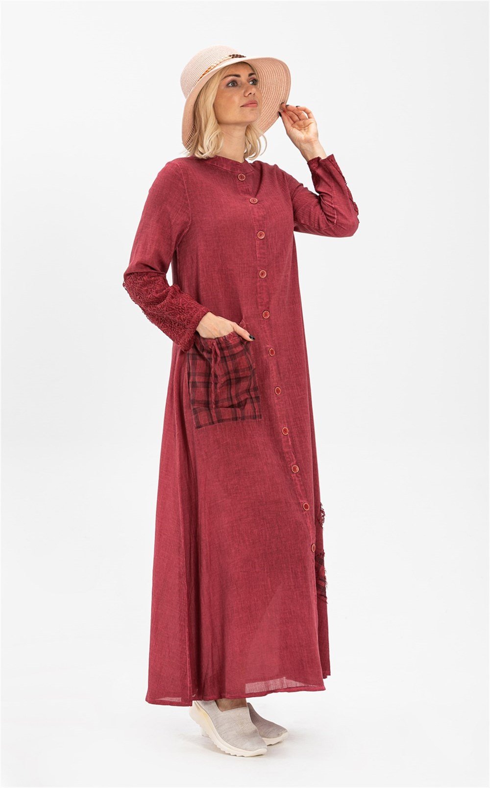 Toptan Zümrüt Şile Bezi Elbise Bordo (922.07)