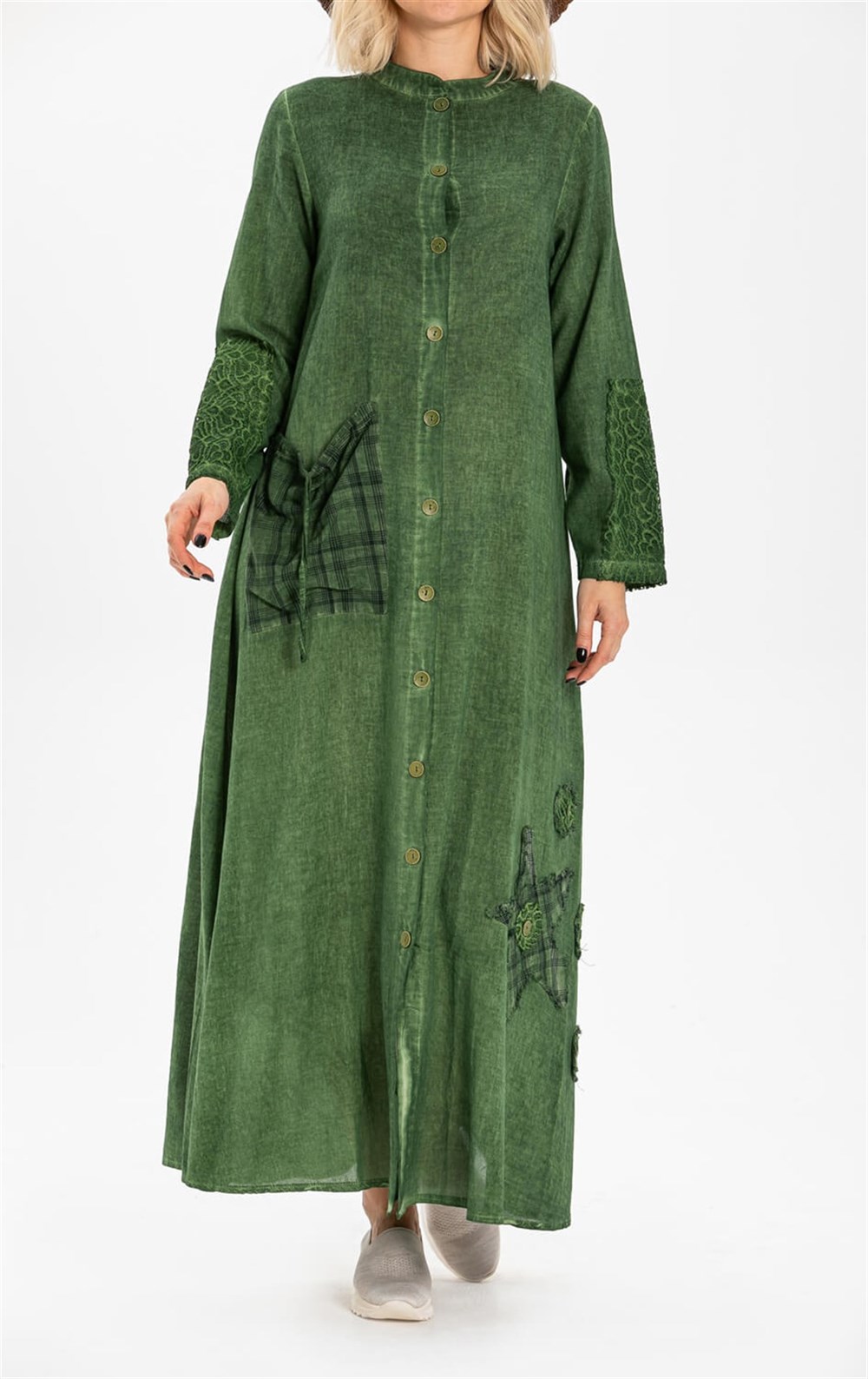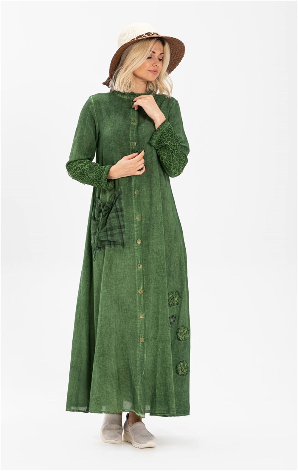 Toptan Zümrüt Şile Bezi Elbise Haki (922.07)
